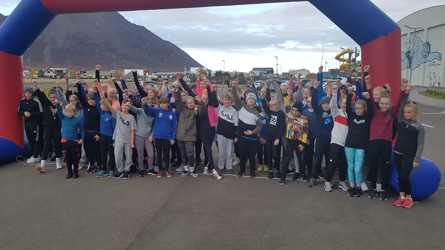 Nemendur 6.-10.bekkjar í Grunnskóla Fjallabyggðar hlupu í Ólympíuhlaupi ÍSÍ í gær.