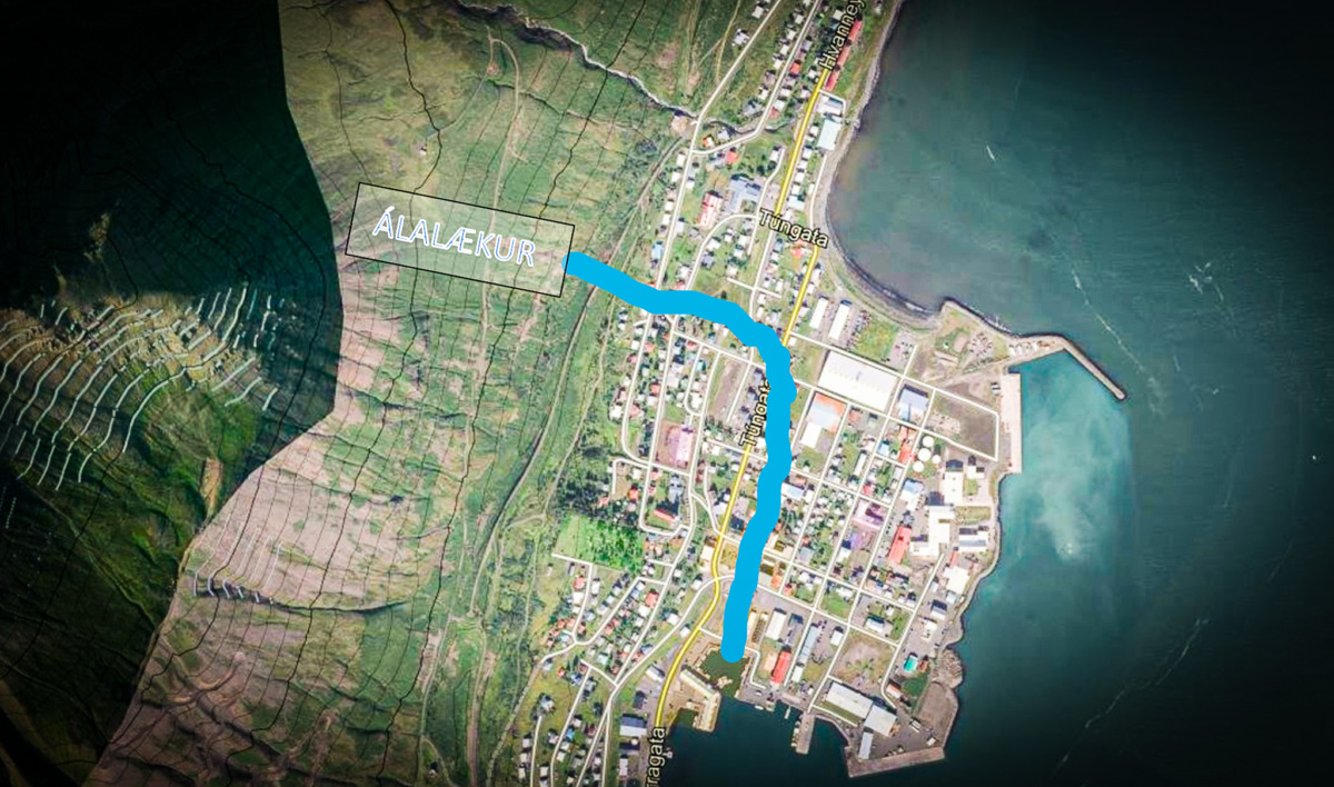 „Fjallabyggð óskar eftir tilboðum í endurnýjun á yfirfallslögn Álalækjar á Siglufirði.