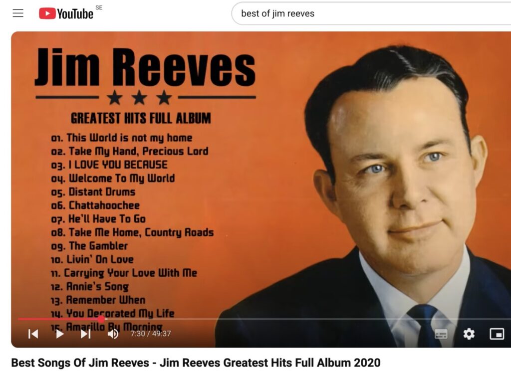 Hér getið þið hlustað á langan lista með mörgum af vinsælustu lögum “Gentelman Jim Reeves.”