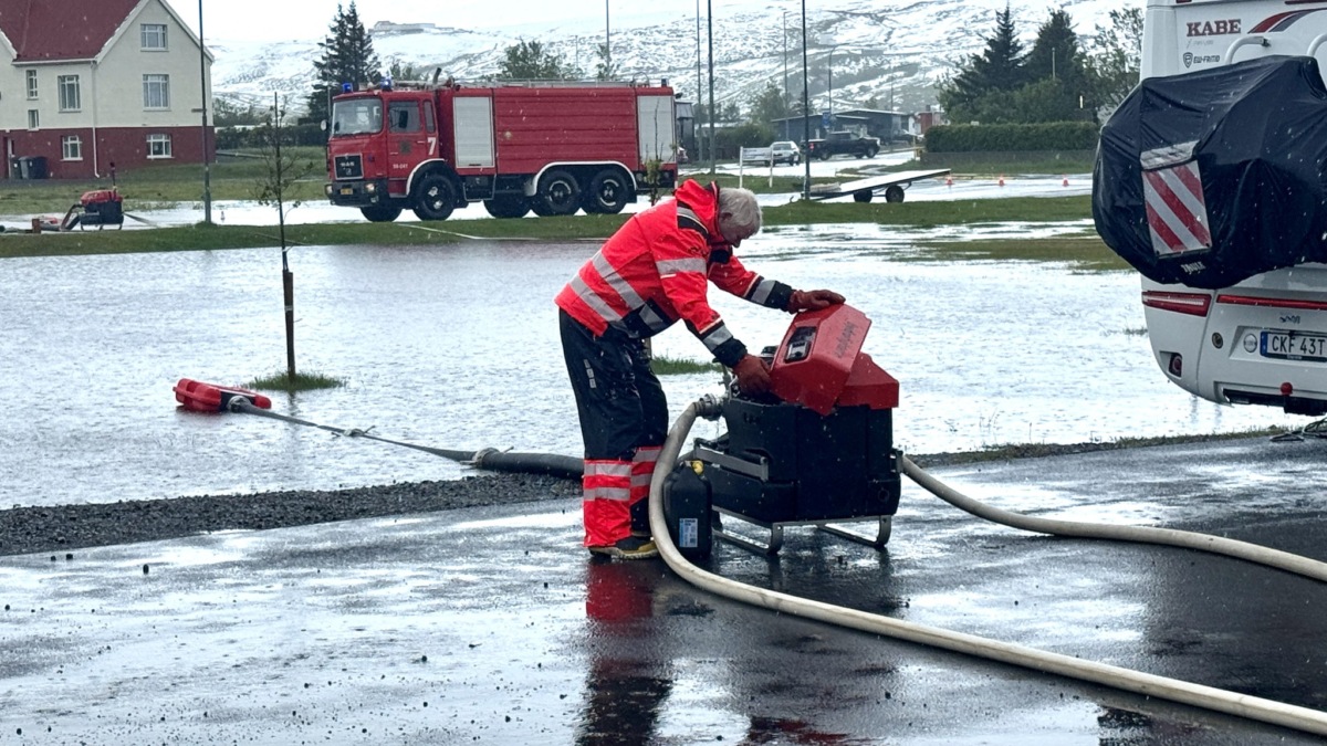Upp úr hádegi í gær var Slökkvilið Fjallabyggðar fengið til aðstoðar við Þjónustumiðstöð sveitarfélagsins þar sem mikið vatn var farið að safnast framan við íþróttamiðstöðina og sundlaugina. Farin var sú leið að koma koma vatni sem ekki komst niður í jarðveginn í tjörnina á Ólafsfirði en þar er útrás sem fer út í sjó og kemur því í veg fyrir að yfirborðsvant fari í fráveitukerfið í bænum.