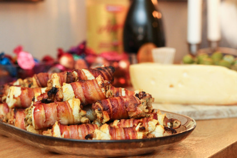 Raðið á ofnplötu og bakið í ofninum í um 20 mínútur, eða þar til beikonið hefur eldast hæfilega.