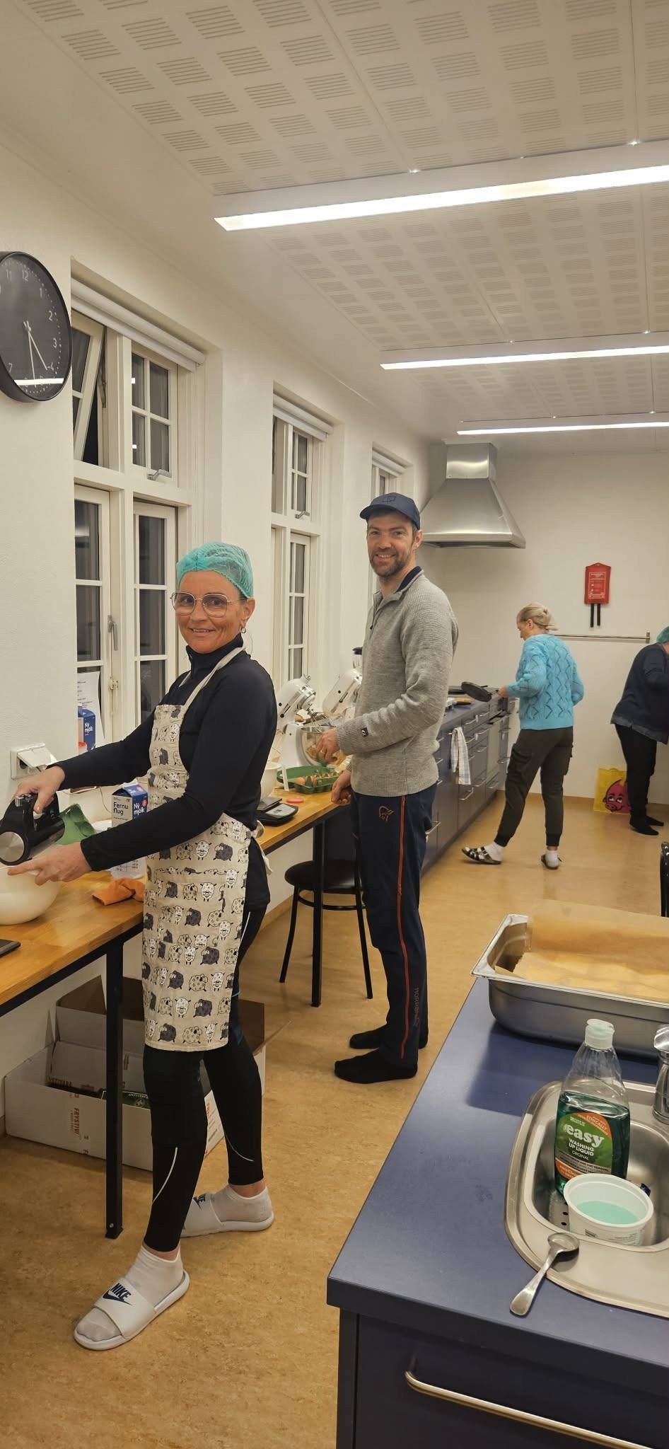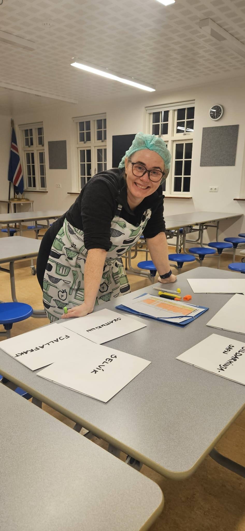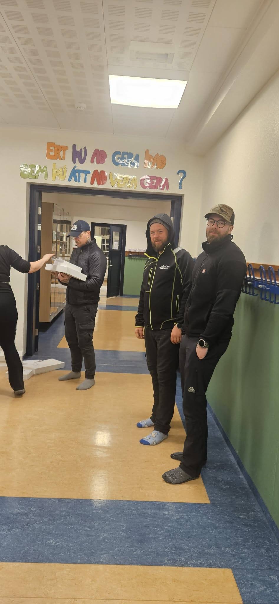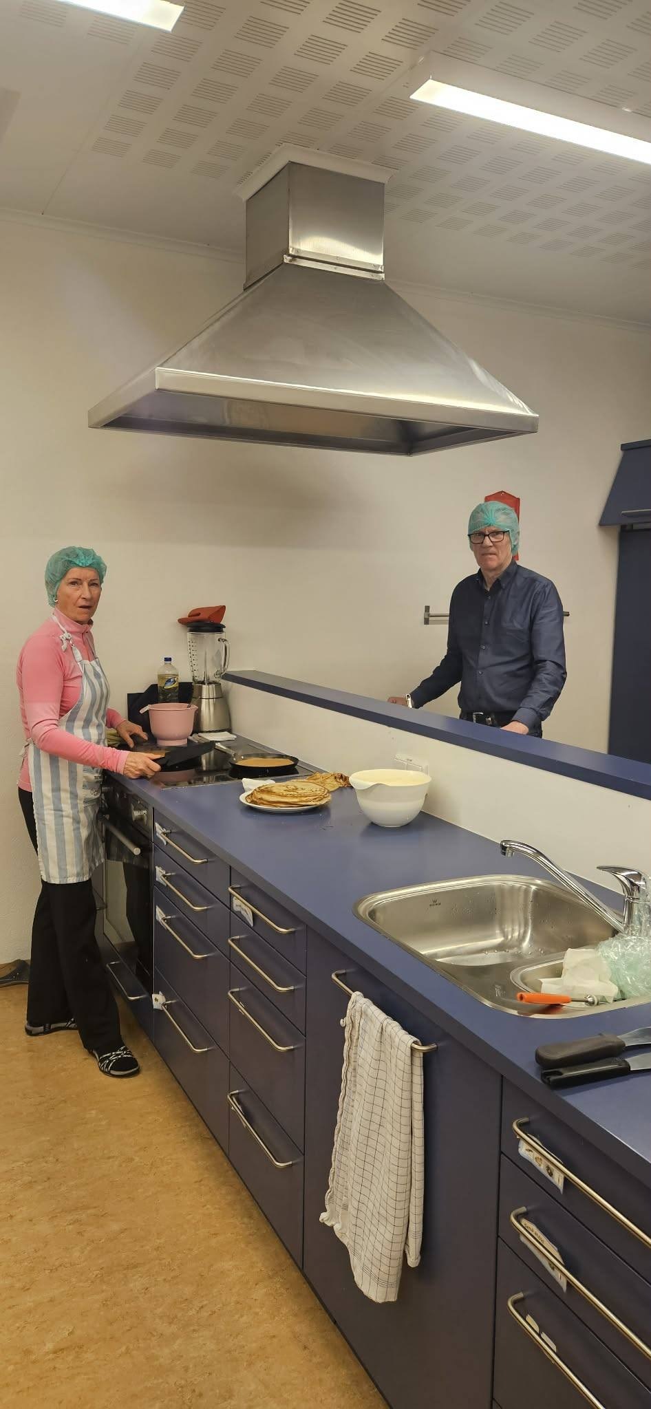 Skíðafélagið fékk að nýta heimilisfræði skólastofu barnaskólans við baksturinn og lagði þennan fína pönnukökuilm um ganga skólans.