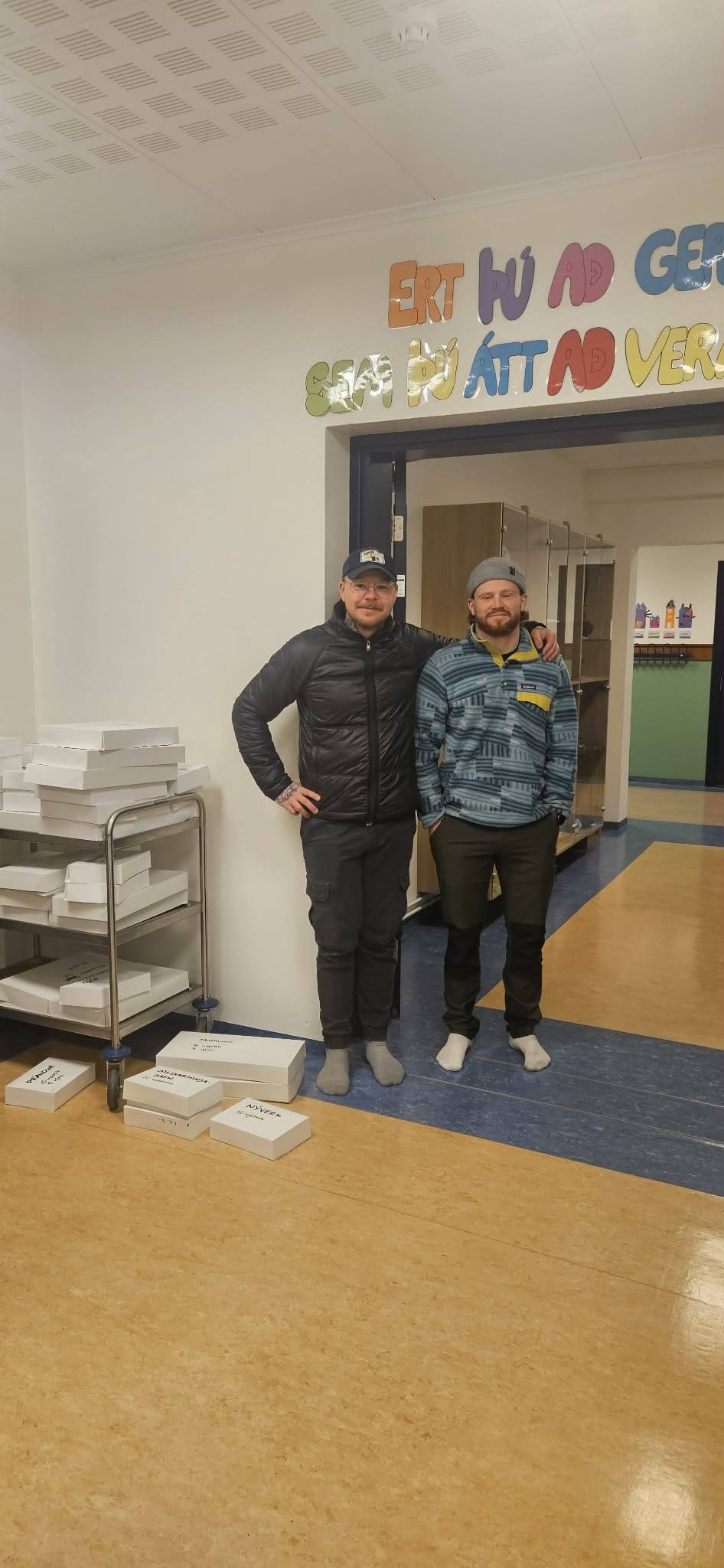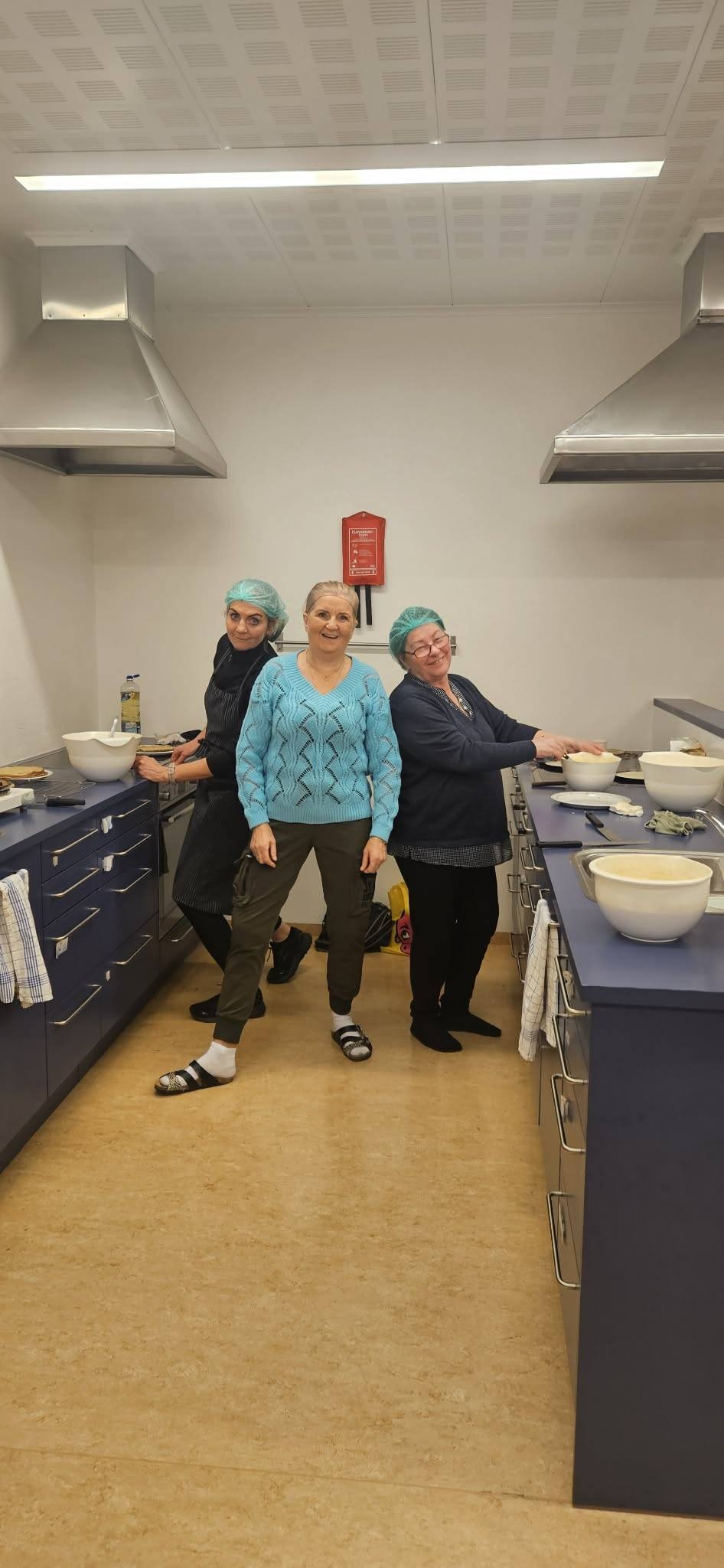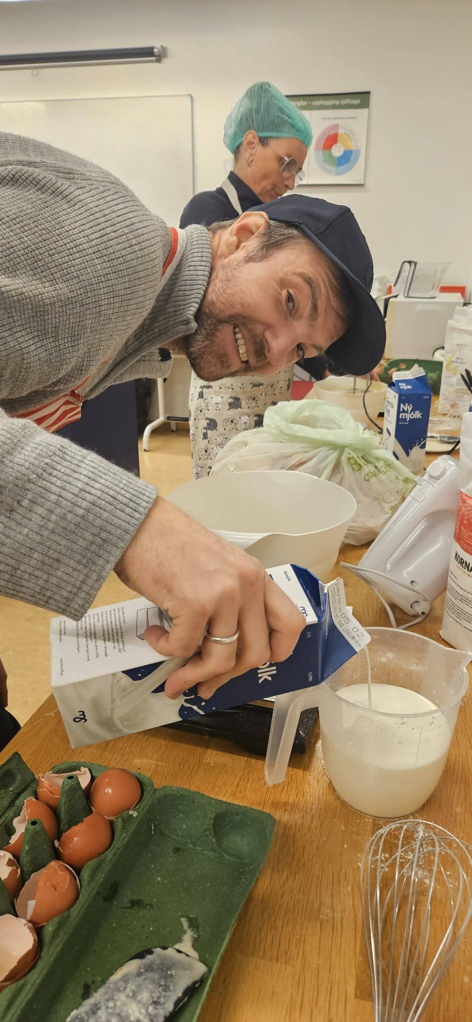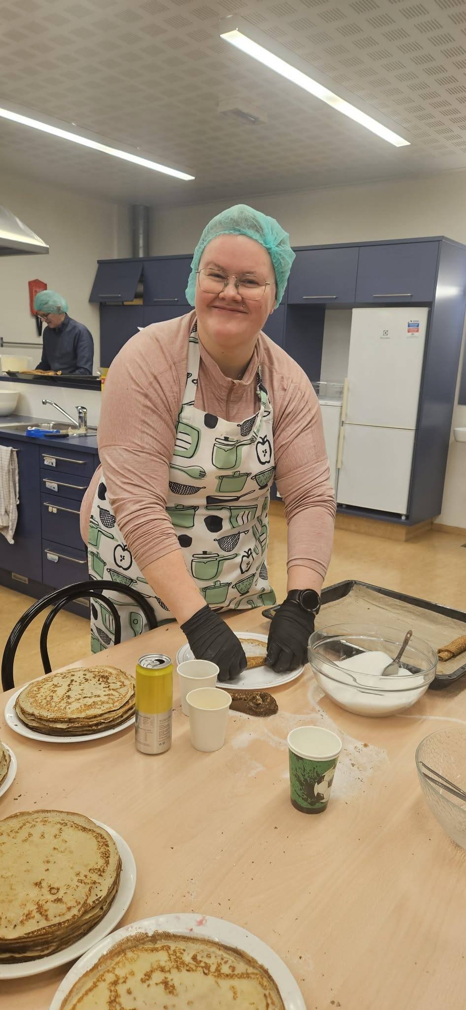 Skíðafélagið fékk að nýta heimilisfræði skólastofu barnaskólans við baksturinn og lagði þennan fína pönnukökuilm um ganga skólans.
