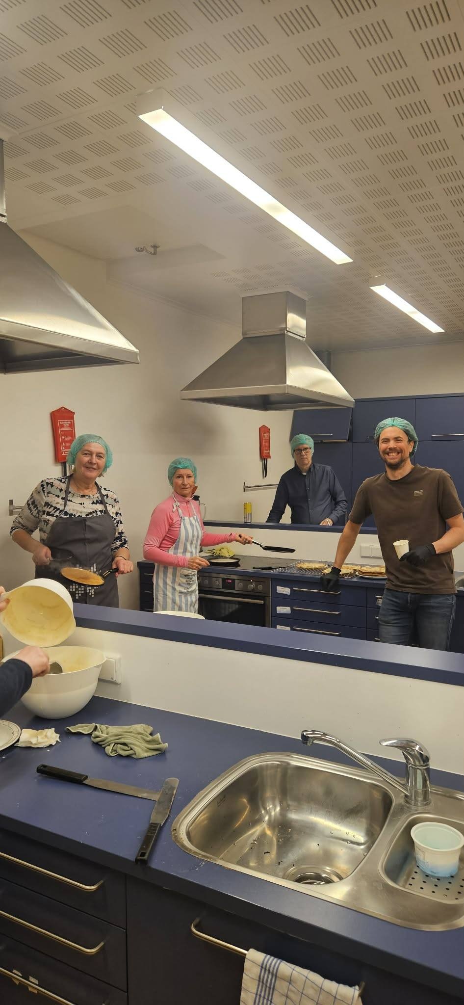 Sólardagurinn á Siglufirði var í gær, miðvikudaginn 28. janúar og reyndist hann annasamur hjá Skíðafélagi Siglufjarðar þegar foreldrar, ömmur, einn afi og góðvinir félagsins komu saman snemma í gærmorgun til að baka pönnukökur í fjáröflunarskyni.