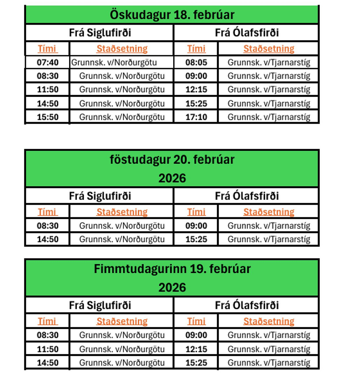 Vegna vetrarfrís Grunnskólans í Fjallabyggð verður akstur skólarútu með breyttu skipulagi frá og með miðvikudeginum 18. febrúar, sem ber upp á öskudag.