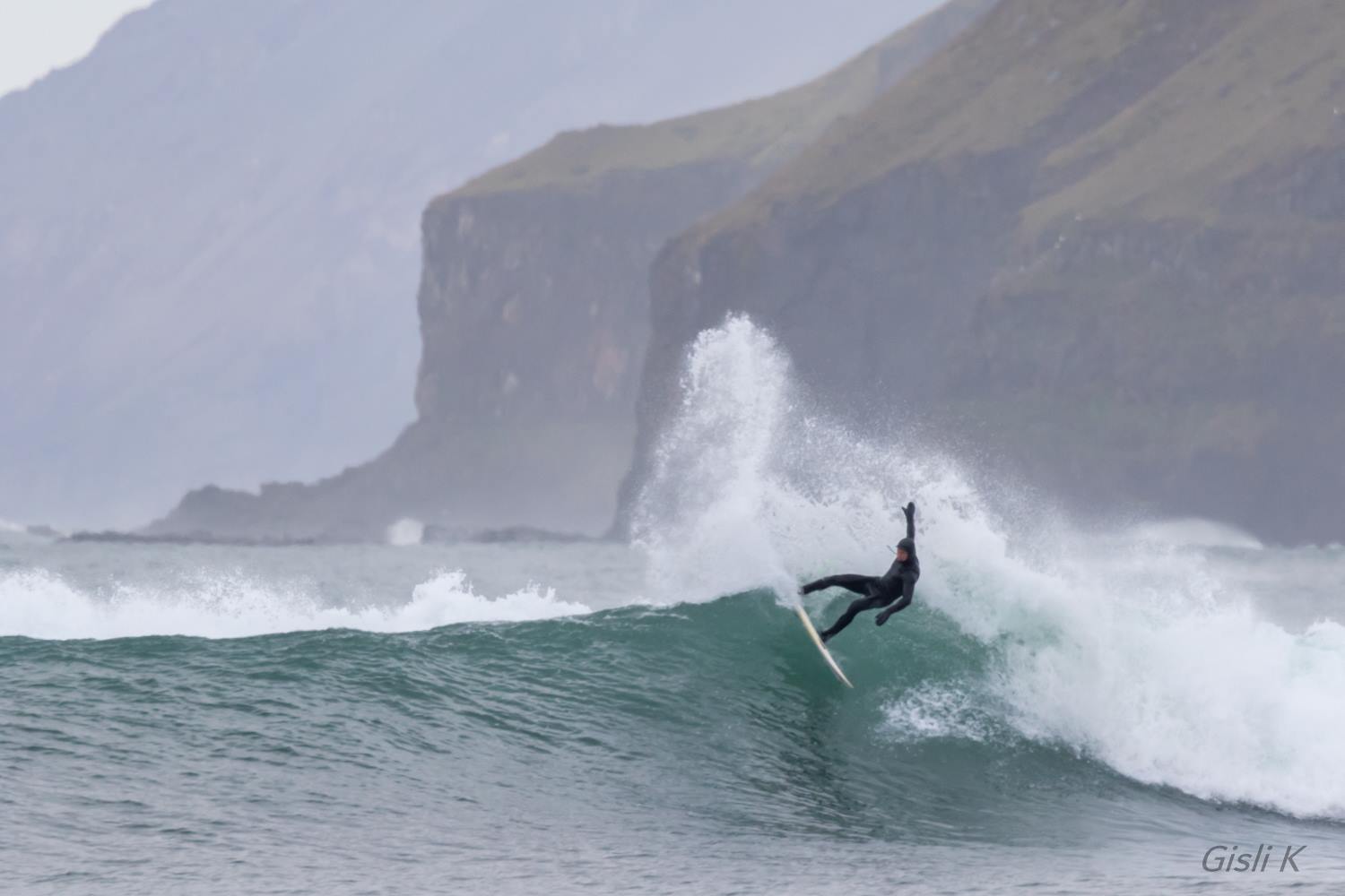 Fjöldi manns var á brimbrettum um helgina. Mynd/Guðmundur Ingi Bjarnason