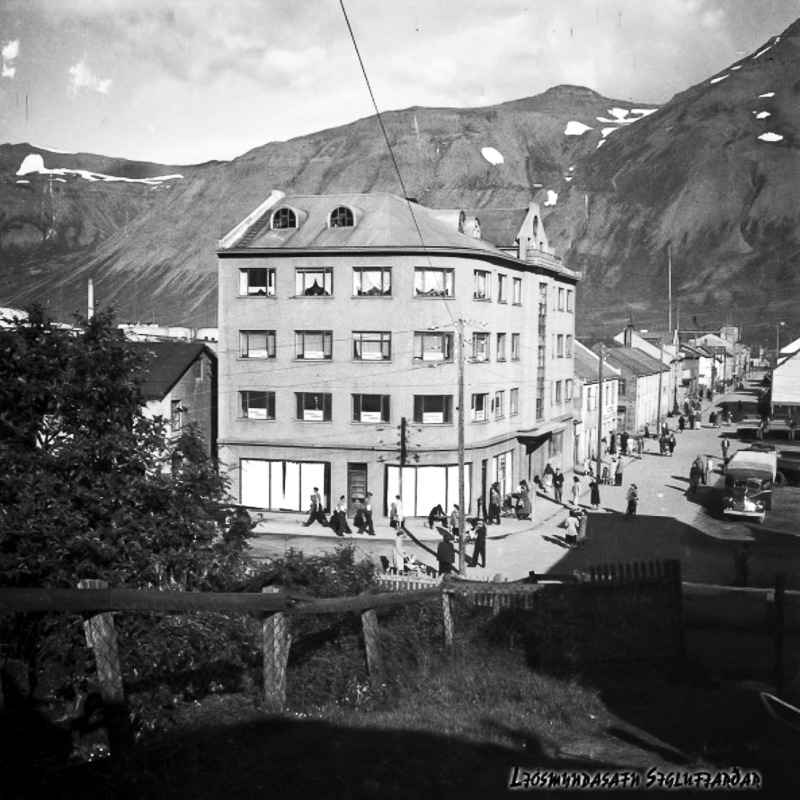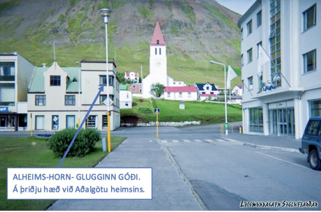P.s. Höfundi hefur lengi langað til að skrifa smásögu um einangraðan einstakling sem getur ekki / fær ekki, að taka þátt í lífinu og neyðist til að horfa á líf og ástir annarra vaxa og dafna út um glugga. Þessi merkilegi horngluggi og útsýni úr hans staðsetningu í hjarta Siglufjarðar, er mér persónulega mjög svo eftirminnilegur og kær, því ég og fyrrverandi sambýliskona og barnsmóðir mín, byrjuðum okkar sambúð í þessari íbúð á þriðju hæðinni í gamla horfna Kaupfélagshúsinu.