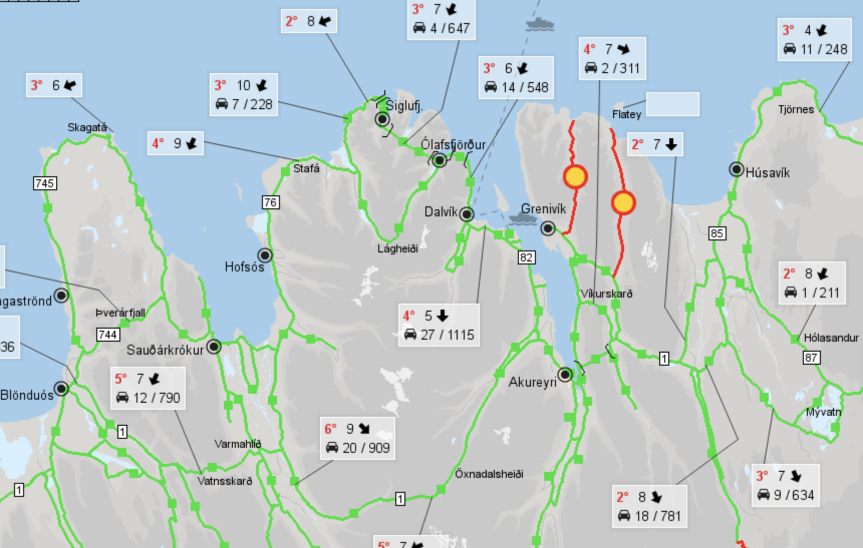 Góð færð er um allt land og nokkrir hálendisvegir að opnast aftur eftir veturinn. Þar á meðal hefur verið opnað fyrir umferð yfir lágheiðina á milli Fljóta og Ólafsfjarðar