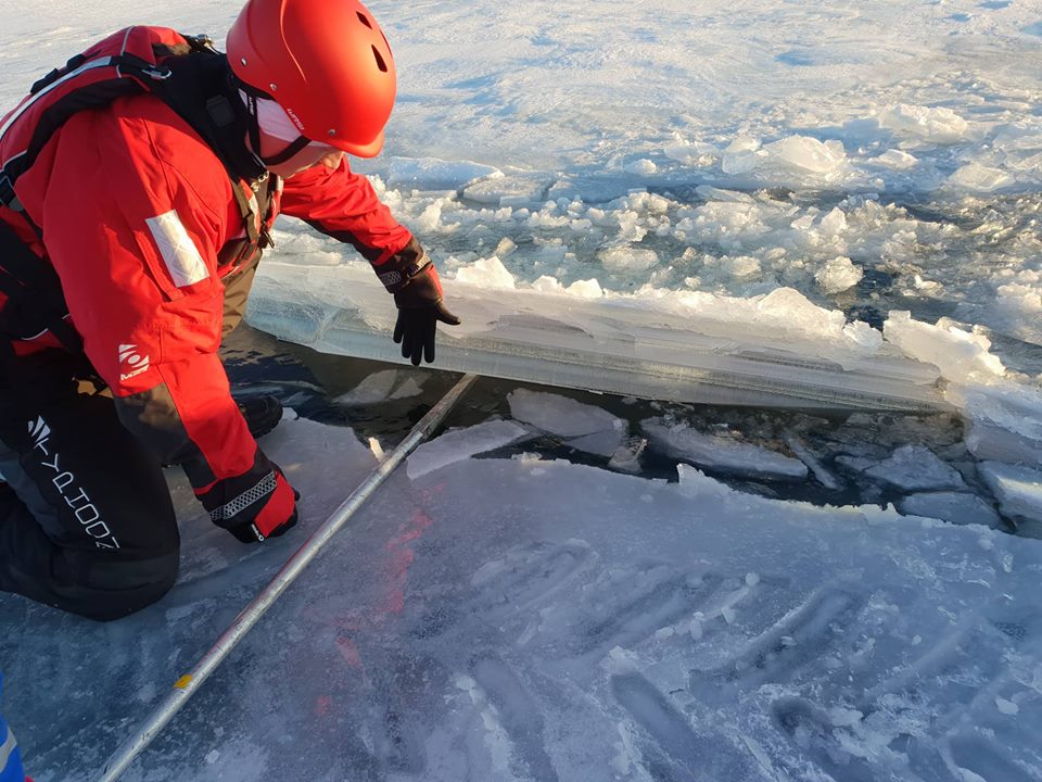 Það er ýmislegt sem gerist í sveitinni, segir á Facebook síðu Blöndu. Rétt eftir hádegi síðastliðinn föstudag fengu félagar í Björgunarfélaginu Blöndu útkall um að dráttarvél hefði fallið niður um ís á Laxárvatni.