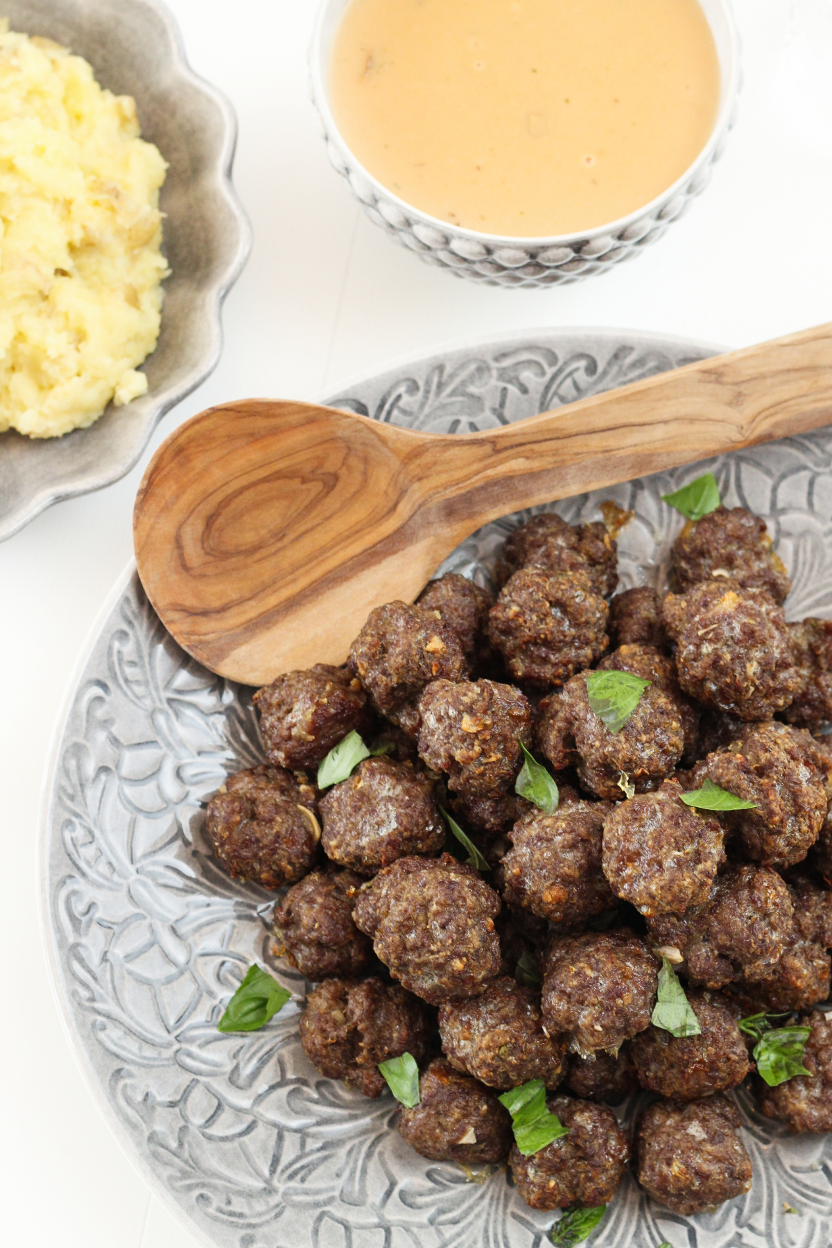Hrærið allt saman og mótið kjötbollur. Bakið við 180° í 15 mínútur.