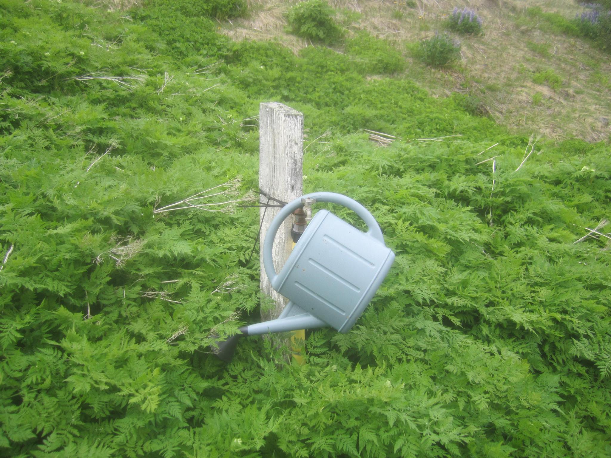 Í nýrri garðinum gekk allt með miklum ágætum en í þeim eldri var ekki deigan dropa að hafa til vökvunar blómanna og voru allir sjáanlegir kranar athugaðir. Var þá fátt annað til ráða en að skreppa aftur í bæinn sækja vatn á flöskum.