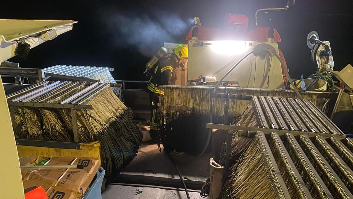 Björgunarskipið fór frá Siglufirði örfáum mínútum síðar, tók fiskibátinn á síðuna og færði að bryggju á Siglufirði þar sem slökkviliðsmenn fóru um borð. Þyrlusveit Landhelgisgæslunnar var þá afturkölluð. Engan sakaði um borð í bátnum.