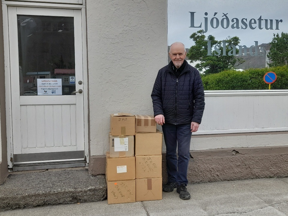 Einn af vildarvinum Ljóðaseturs Íslands á Siglufirði, Jóhann Heiðar Jóhannsson, kom færandi hendi á dögunum og það ekki í fyrsta sinn. Nokkrir kassar af ljóðabókum úr safni hans og föður hans, Jóhanns Jóhannssonar skólastjóra Gagnfræðaskóla Siglufjarðar til áratuga.