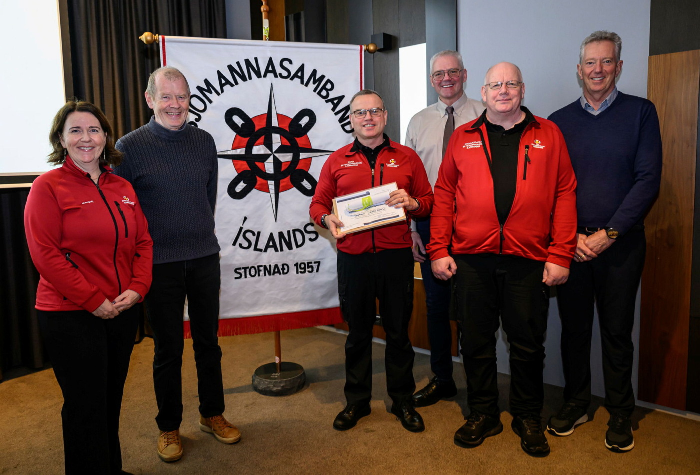 Bogi Þorsteinsson skólastjóri Slysavarnaskóla sjómanna tók við gjöfunum við lok þings Sjómannasambandsins á Grand Hótel í gær.