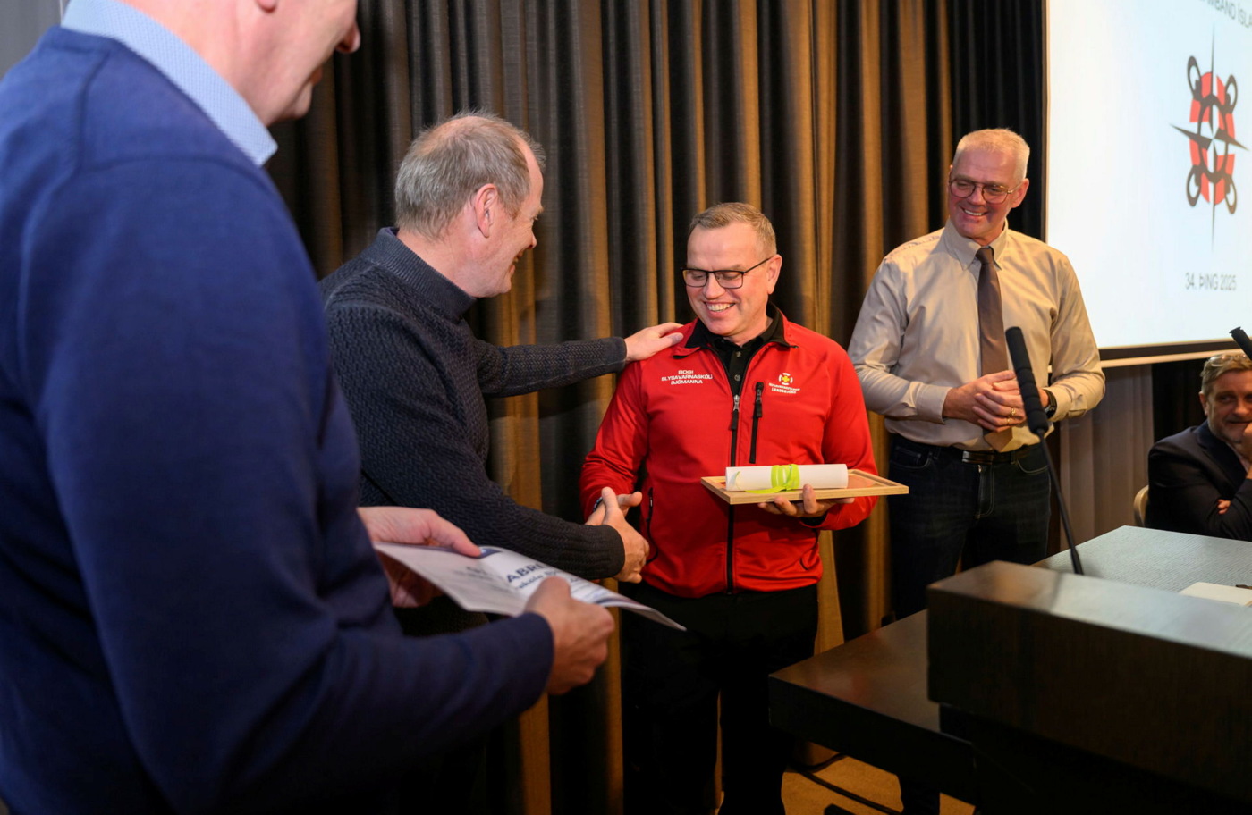 Bogi Þorsteinsson skólastjóri Slysavarnaskóla sjómanna tók við gjöfunum við lok þings Sjómannasambandsins á Grand Hótel í gær.