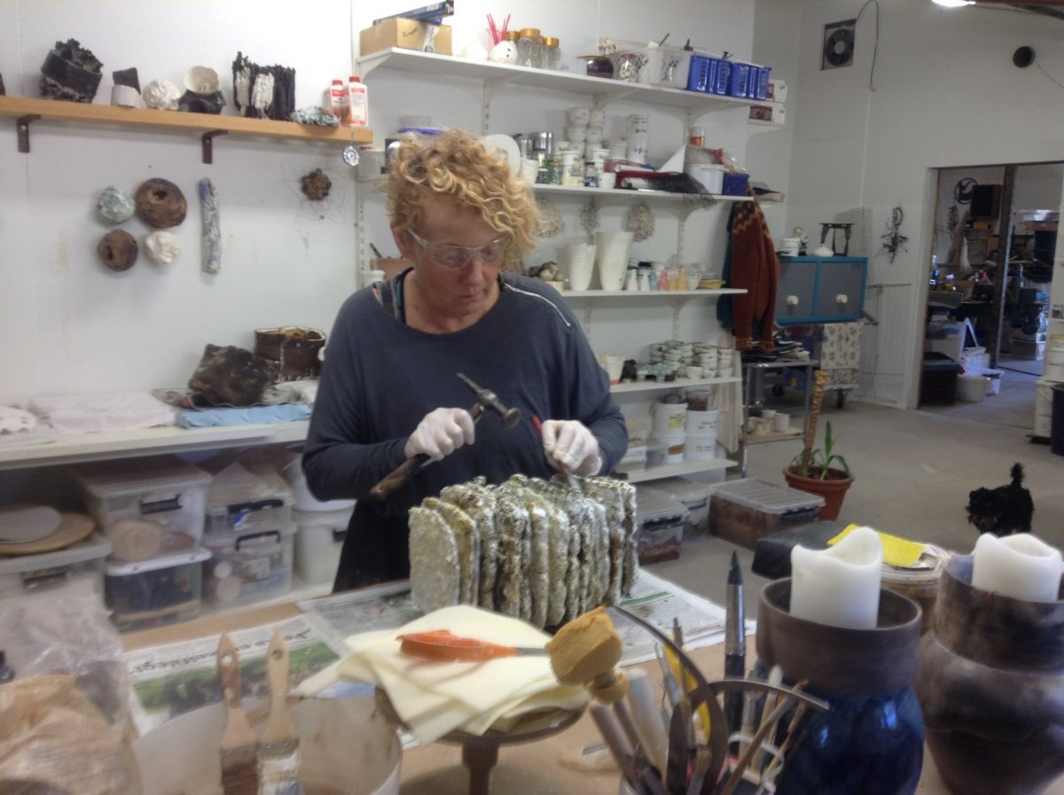 Hólmfríður er fædd í Reykjavík og hefur búið í Ólafsfirði frá árinu 1976 og hefur starfað að myndlist með leir sem aðalefni í 28 ár.