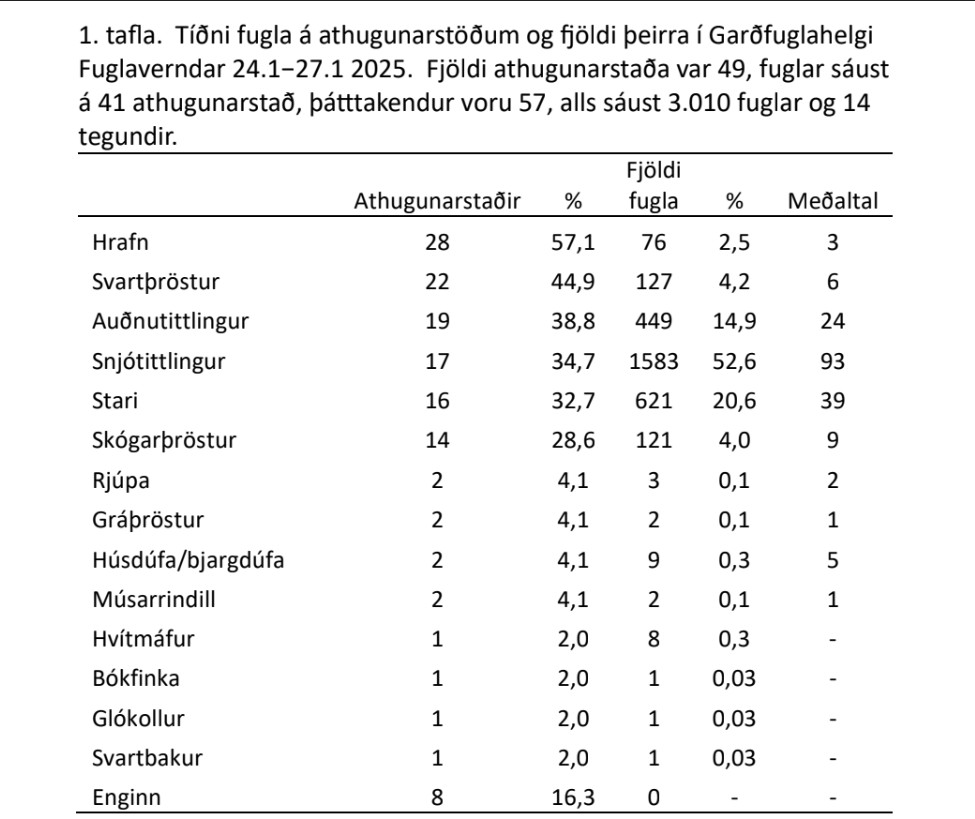 Garðfuglahelgin janúar 2026 rafræn skráning athuguna.