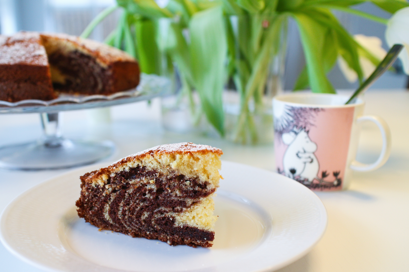 Hrærið egg og sykur saman þar til blandan er ljós og létt. Bætið mjólk, smjöri, vanillusykri, lyftidufti, salti og hveiti saman við og hrærið þar til blandan er slétt og kekkjalaus. Setjið 5-6 dl af deiginu í aðra skál og hrærið kakói saman við. Hrærið 3 msk af hveiti saman við ljósa deigið.