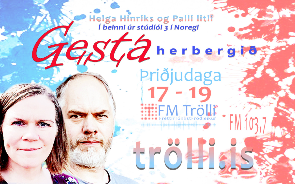 Palli og Helga verða með opið Gestaherbergið í dag á FM Trölla frá klukkan 17:00 til 19:00 og senda út beint úr stúdíói III í Noregi.