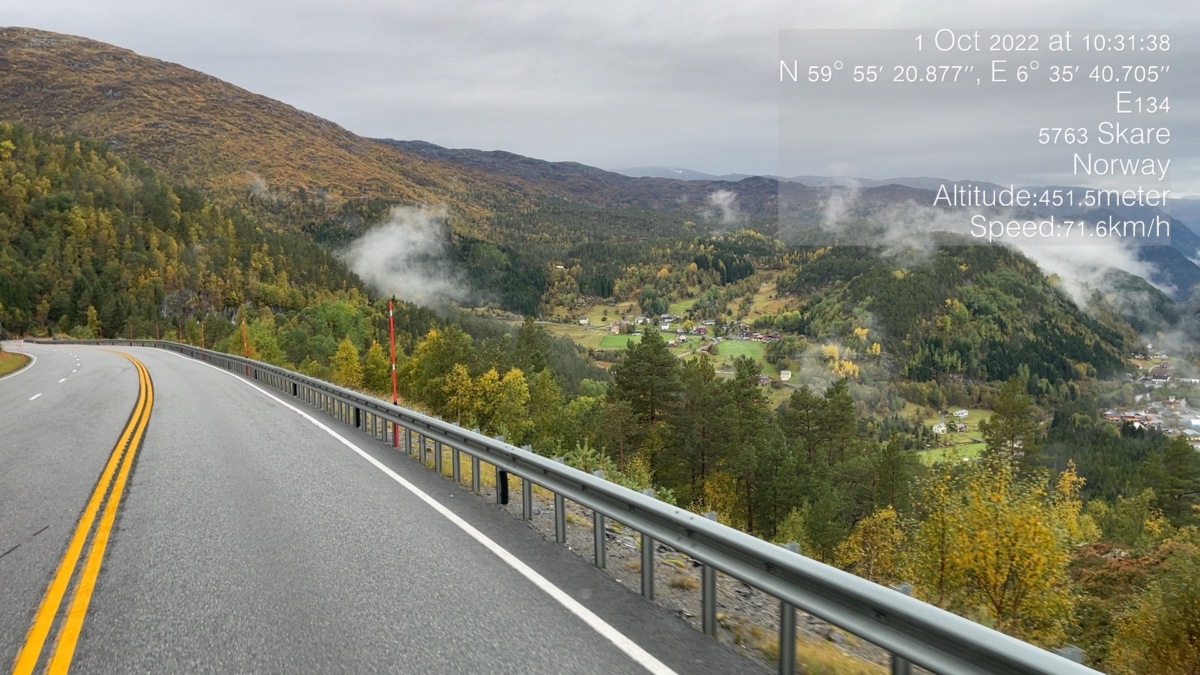Myndin er tekin 1. október nálægt vegamótum E134 og 13 í sveitarfélaginu Ullensvang í Noregi. Þar er þetta þorp sem heitir Skare.