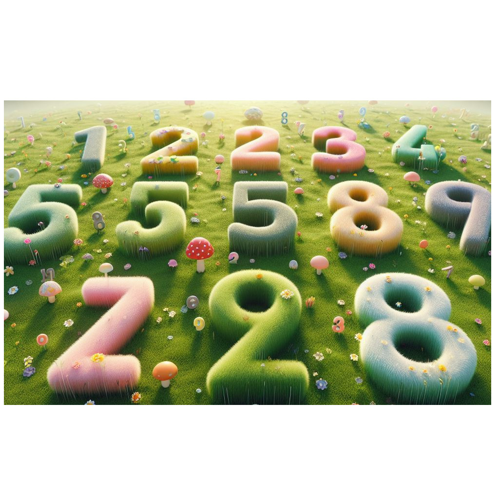 Gervigreindin var beðin um að búa til mynd með tölustöfum frá 0 til 9 á grasgrænum fleti ásamt einhverjum smá skreytingum.