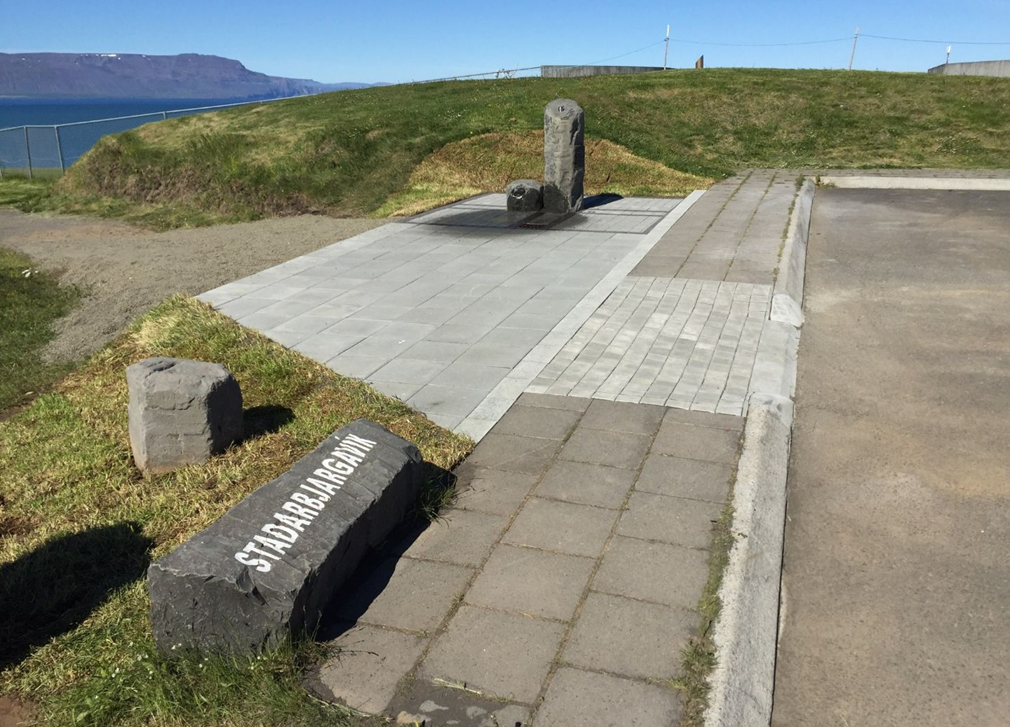 Minnisvarðinn er mikil prýði og stendur við sundlaugina á Hofsósi, rétt fyrir ofan Staðarbjargavík þar sem spor Friðbjörns gjarnan lágu eins og segir á vatnspóstinum.