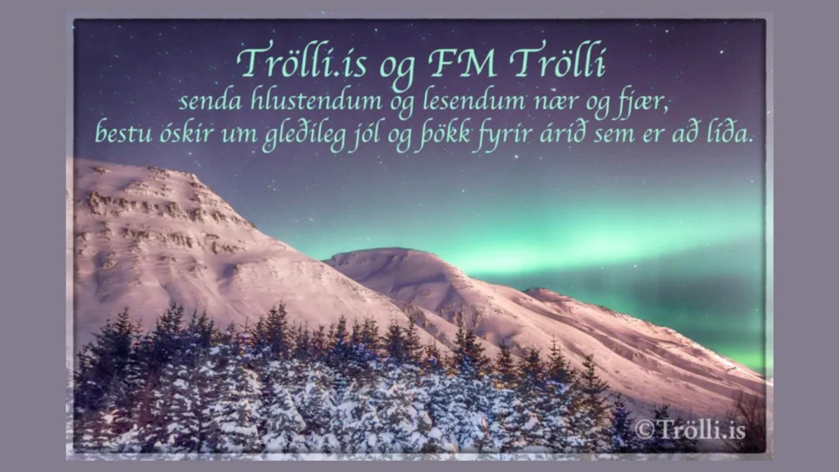 Gleðileg jól Posted by Kristín Magnea Sigurjónsdóttir | des 24, 2023 | FM Trölli, Fréttir TRÖLLI.IS OG FM TRÖLLI SENDA HLUSTENDUM OG LESENDUM NÆR OG FJÆR BESTU ÓSKIR UM GLEÐILEG JÓL OG ÞÖKK FYRIR EINSTAKLEGA ÁNÆGJULEG SAMSKIPTI Á ÁRINU SEM ER AÐ LÍÐA. Share via: 45 Shares Facebook 33 Twitter 0 More