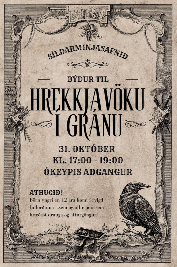 Síldarminjasafnið á Siglufirði býður gestum í hrekkjavöku í Gránu fimmtudaginn 31. október klukkan 17:00–19:00. Aðgangur er ókeypis og allir velkomnir að taka þátt í hátíðlegu hrekkjavökuskapi.