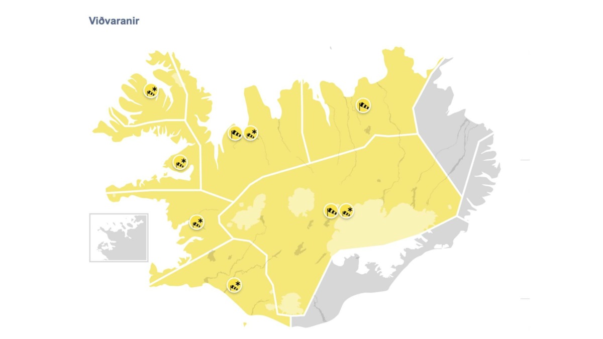 Veðurstofa Íslands hefur gefið út gula viðvörun vegna veðurs: