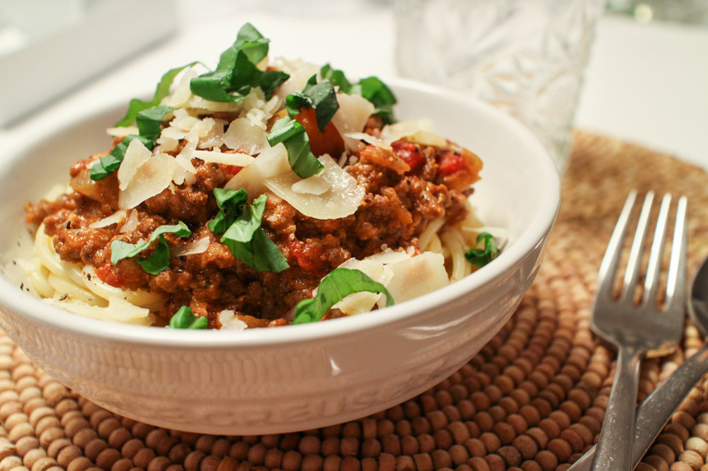 Berið fram með pasta og ferskrifnum parmesan. Ef þið eigið ferska basiliku skuluð þið ekki hika við að saxa hana yfir.