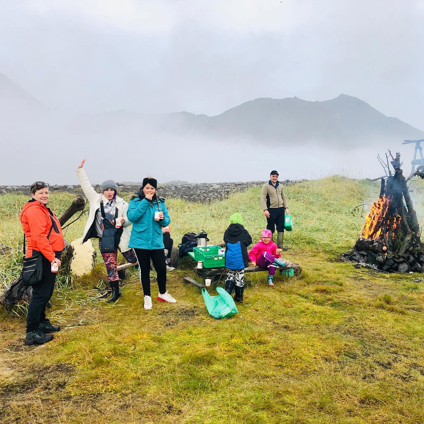 Eftir hreinsunina var kveiktur varðeldur og þátttakendum var boðið upp á kaffi og pylsur.