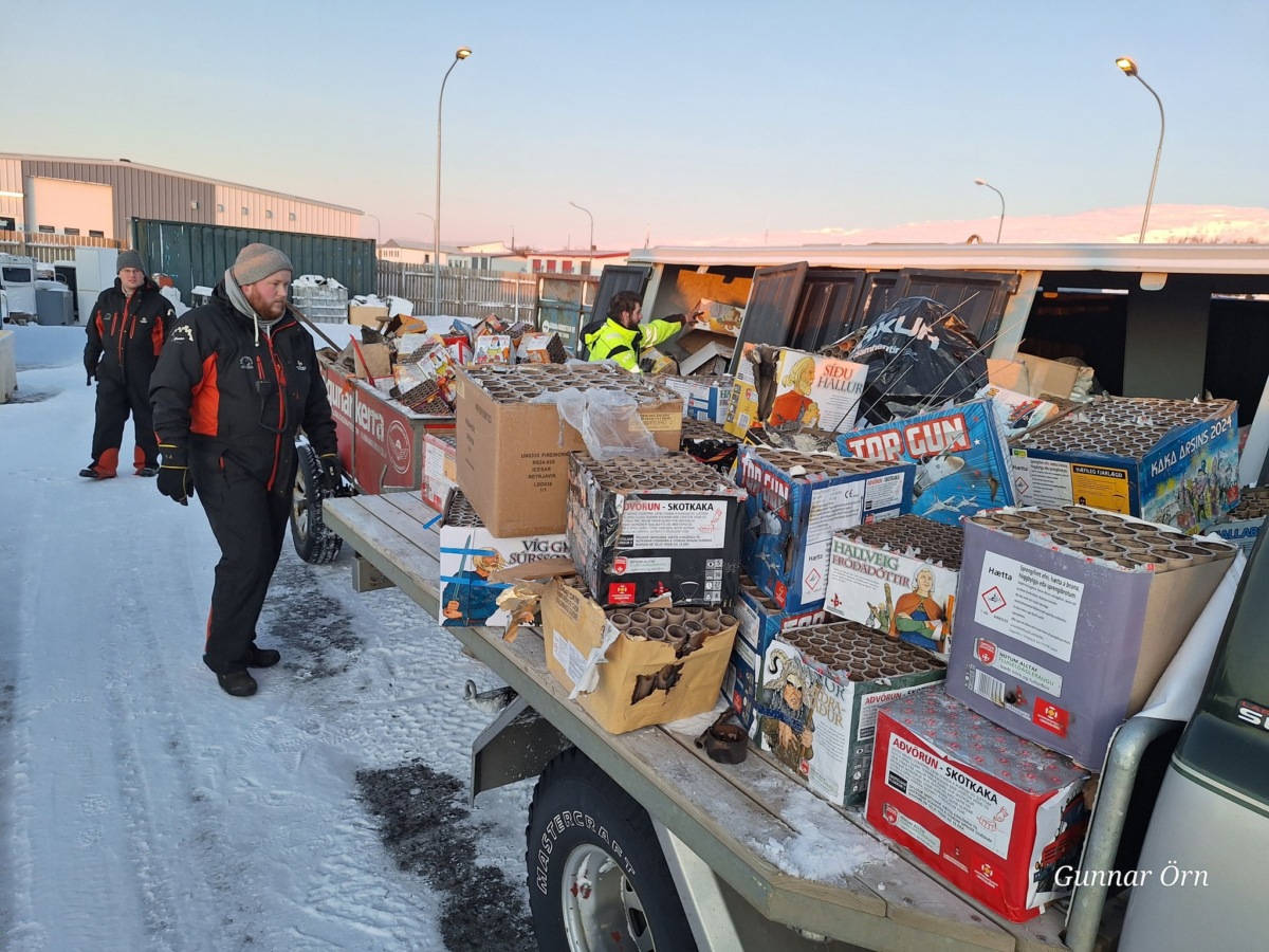 Á nýjársdag fóru fjórir félagar úr Björgunarsveitinni Húnum ásamt tveimur harðduglegum tilvonandi björgunarsveitarmönnum og hreinsuðu upp flugeldaruslið á götunum á Hvammstanga.