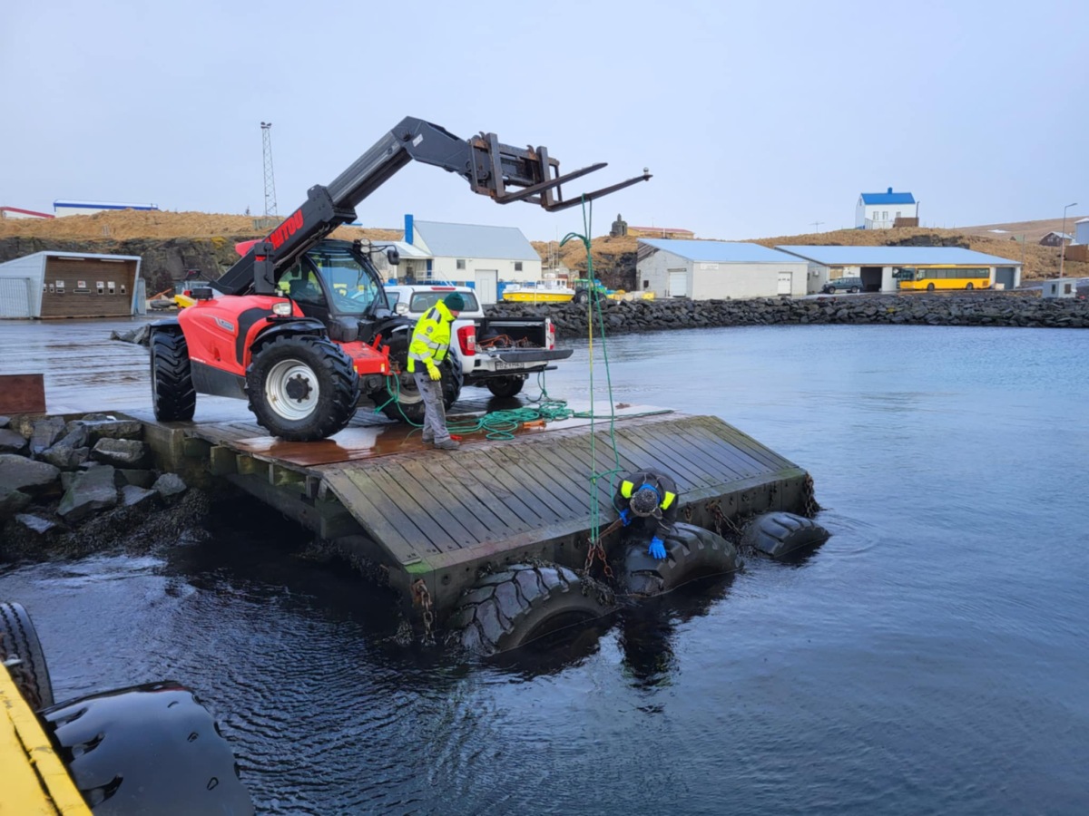 Fóru þeir að huga að hafnarmannvirkjum þar. m.a. strekktu þeir á flotbryggju, rafmagn var lagfært á ljósamöstrum og innsiglingarljósum, einnig hengdu þeir upp dekk á ný sem voru dottin niður ferjurampinn.