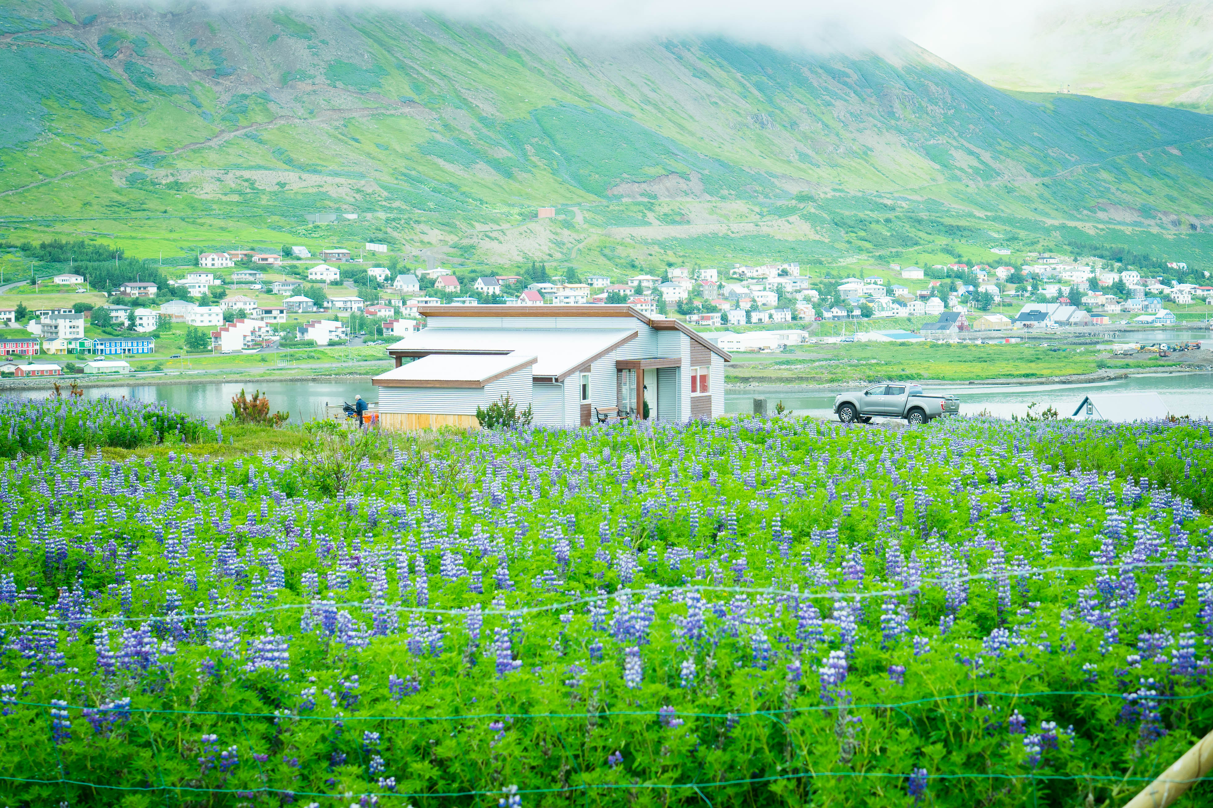 Kristján Hauksson og Erla Björnsdóttir eru bæði fædd og uppalin hér á Sigló og þau byggðu þetta dásamlega fallega hús og þegar Kristján stendur á pallinum sunnan við húsið segir hann: “og svo get ég líka skálað við og vinkað mömmu minni henni Gunnu Finna sem liggur hér í nýja kirkjugarðinum rétt hjá.”