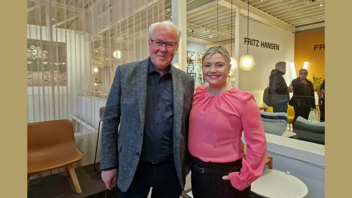 Forsíðumynd/Lilja Dögg Alfreðsdóttir menningar- og viðskiptaráðherra og Eyjólfur Pálsson stofnandi Epal á sýningunni Samband.