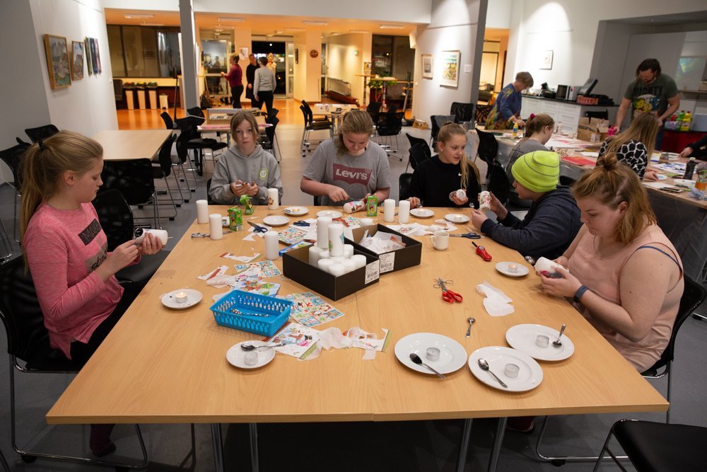 Sköpunargleði og einbeiting skein úr svip gesta á jólasmiðju Menntaskólans á Tröllaskaga sem haldin var 4. desember.