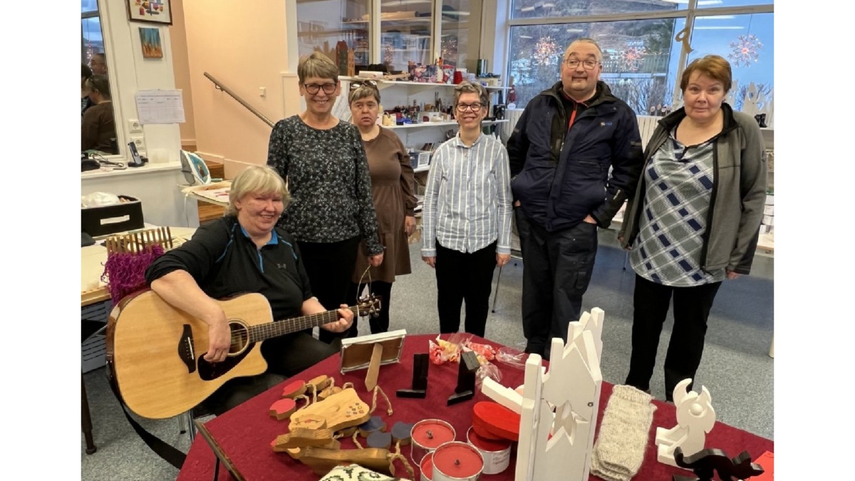 Þar var gleðileg jólastemning, verið að baka jólasmákökur, föndra, búa til jólaskraut og jólavörur og söngurinn ómaði um allt hús.