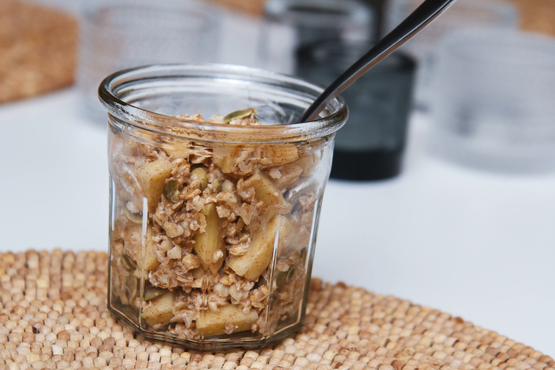 Blandið öllu saman í skál, setjið lok yfir og látið standa í ísskáp yfir nótt. Geymist í 5 daga í loftþéttu íláti inni í ísskáp.