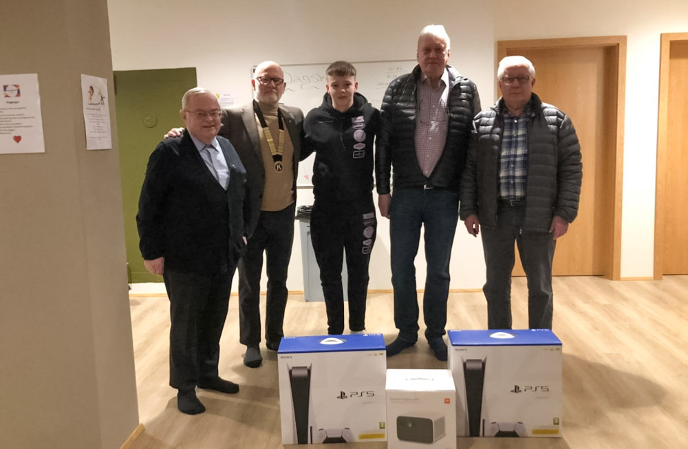 Miðvikudagskvöldið 22. febrúar sl. komu Kíwanismenn færandi hendi í félagsmiðstöðina Neon. Kíwanisklúbburinn Skjöldur afhenti félagsmiðstöðinni tvær Playstation 5 tölvur og smart skjávarpa að gjöf. Agnar Óli Grétarsson, fulltrúi Neonráðs tók við gjöfinni fyrir hönd unglinga í Neon og þakkaði Kíwanis fyrir höfðinglega gjöf.