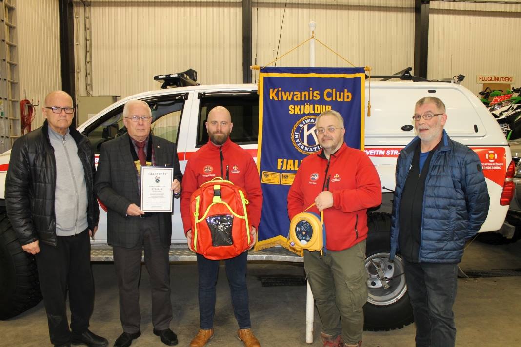 Færðu þeir björgunarsveitinni Strákum á Siglufirði og björgunarsveitinni Tindi í Ólafsfirði hjartastuðtæki, burðartösku og fylgihluti sem febrúarverkefni Kiwanisklúbbsins.