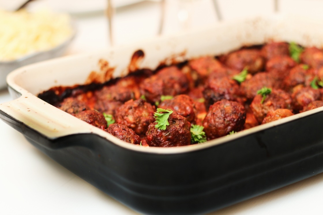 Ofnbakaðar kjötbollur í dásamlegri kóksósu – uppskrift fyrir 5 (sem kvöldverður)