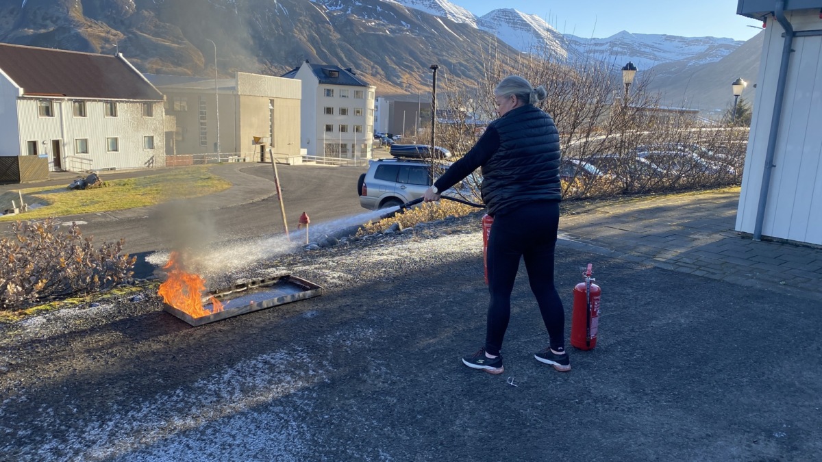 Einnig fékk starfsfólk sambýlisins að Lindargötu 2 á Siglufirði kynningu og handleiðslu á notkun slökkvitækja og eldvarnateppis sem á að vera til staðar á hverju heimili og vinnustað.