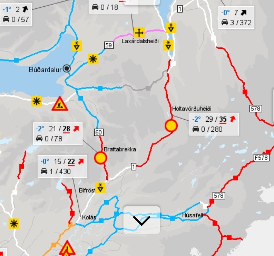 Nú er búið að loka Holtavörðuheiðinni. Þar er veður slæmt eins og sjá má á meðfylgjandi mynd af vef Vegagerðarinnar.