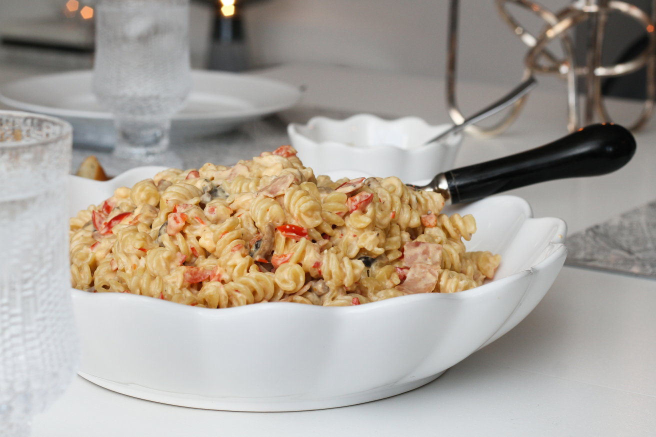 Mexíkóostapasta með skinku, papriku og chili – uppskrift fyrir 6