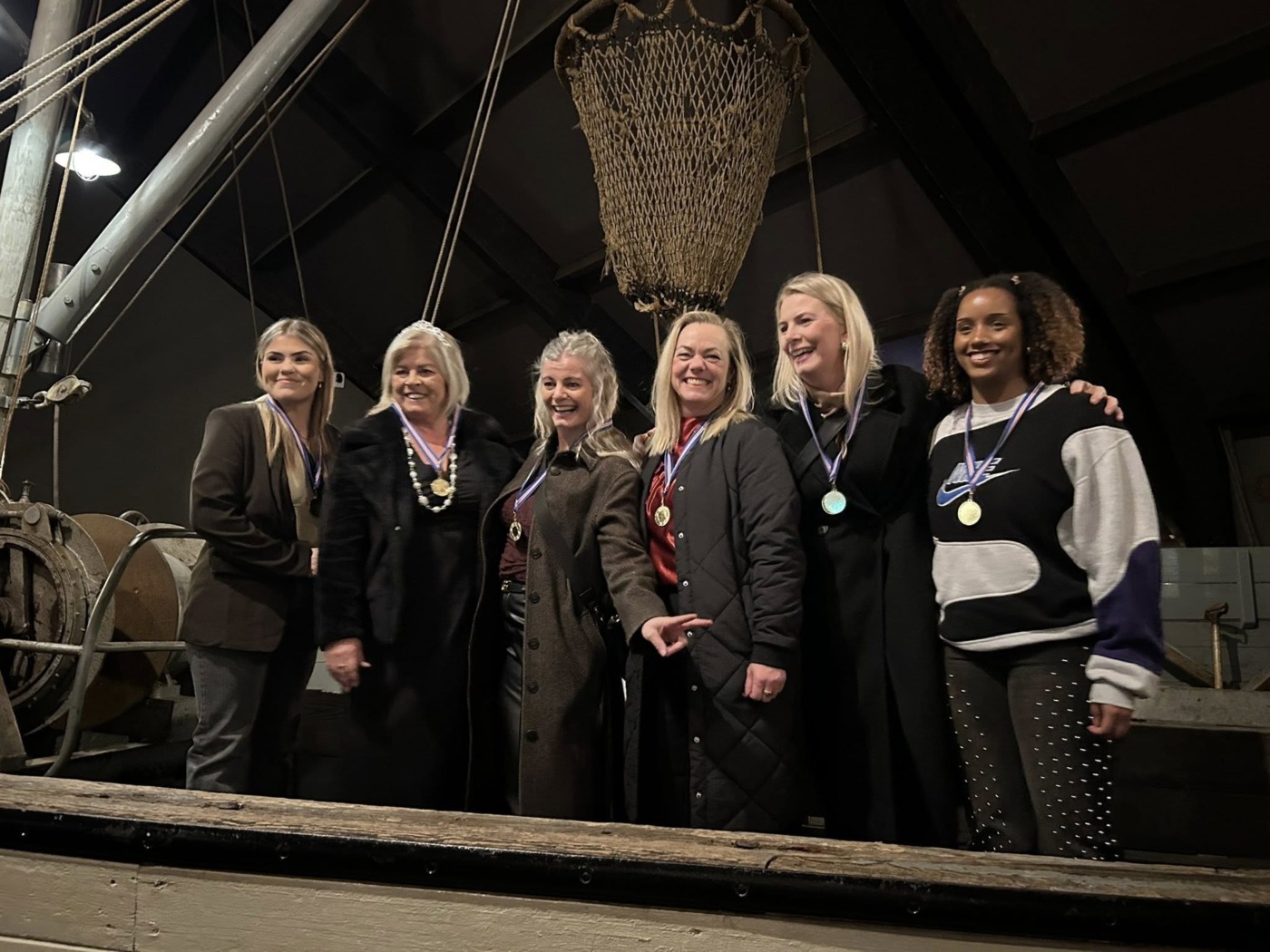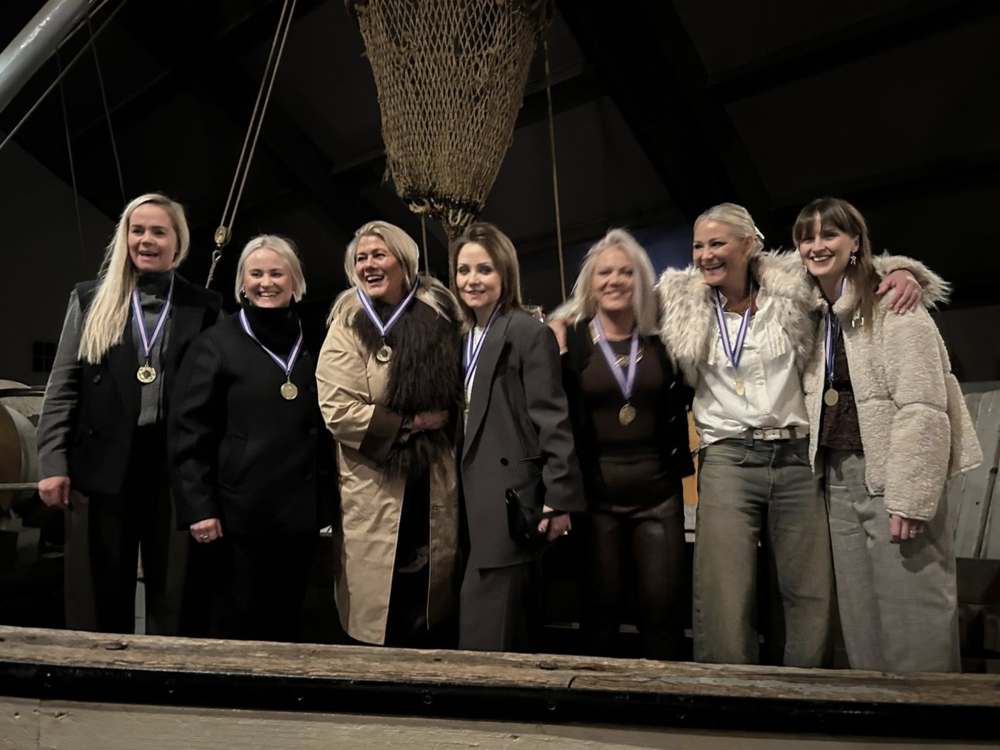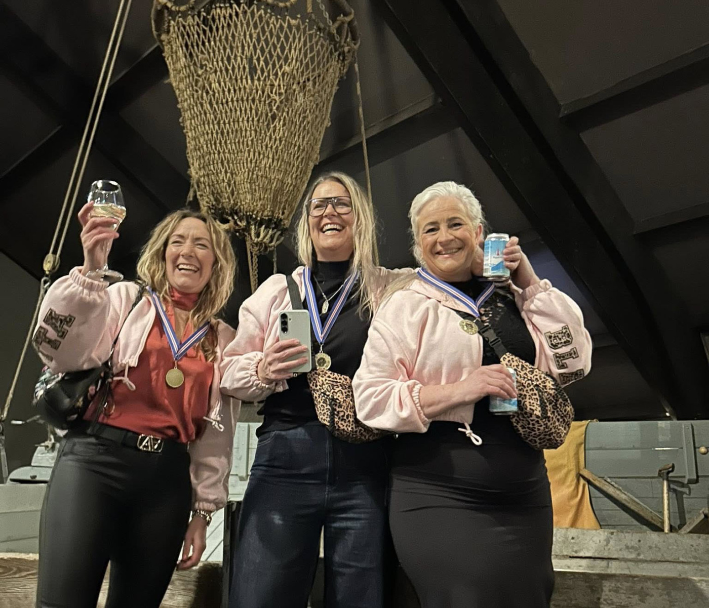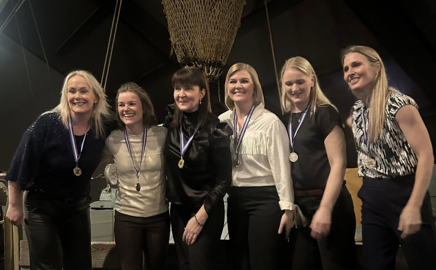 Þessir hressu keppendur létu allt vaða í fögnuðinum. Gullið um hálsinn og buxurnar á hælunum, svona á að taka á móti sigri.