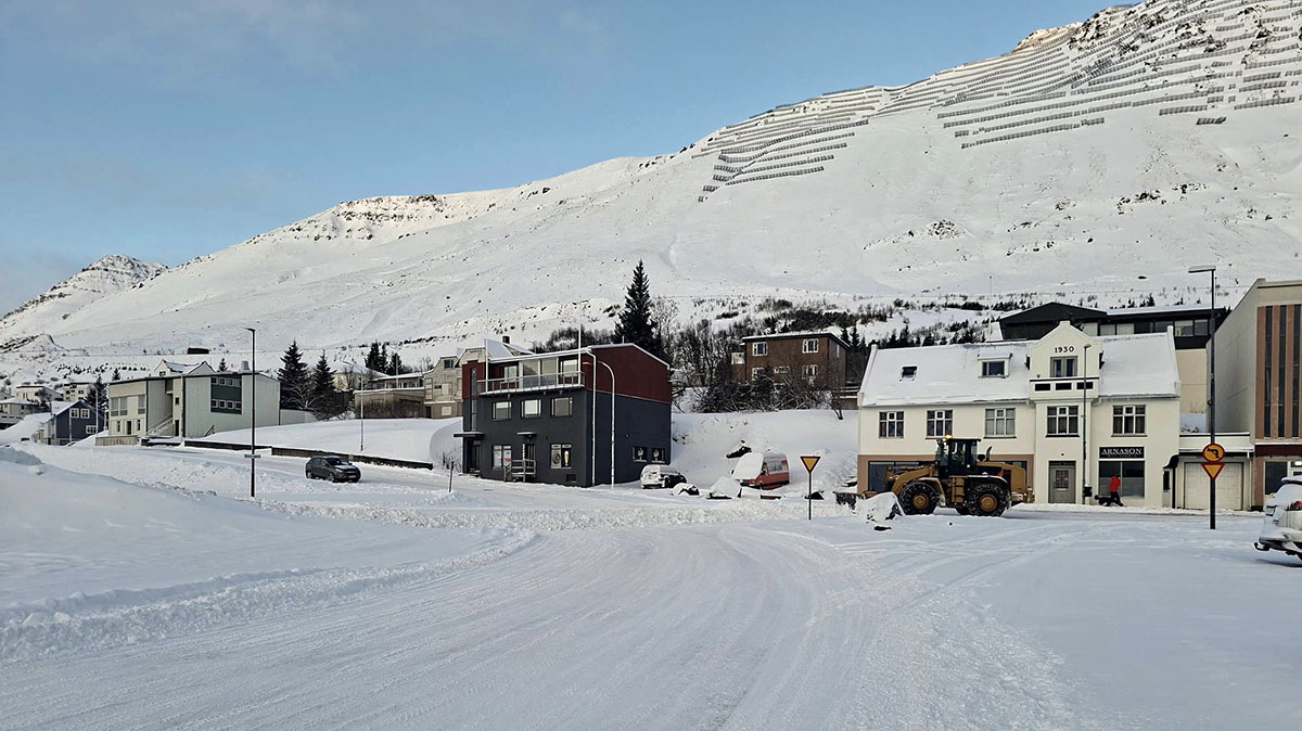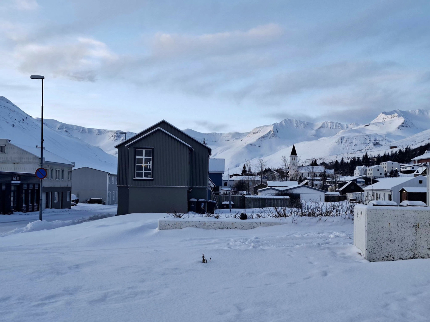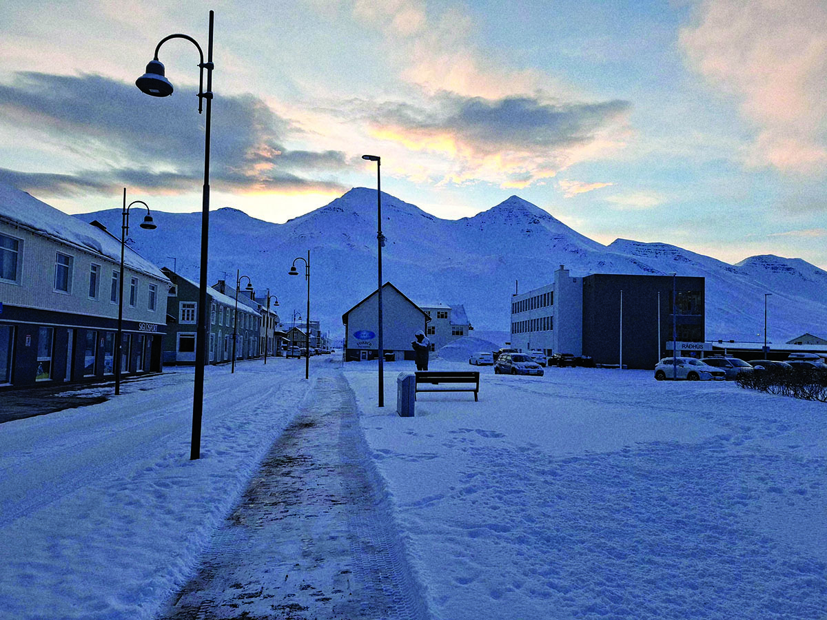 Útsýnið yfir fjörðinn var tært og skýjabakkar lituðust af hlýjum tónum morgunsins. Það er á slíkum stundum sem Siglufjörður sýnir sitt milda andlit, þar sem kyrrðin og birtan mynda einstaka stemningu sem erfitt er að lýsa með orðum einum.