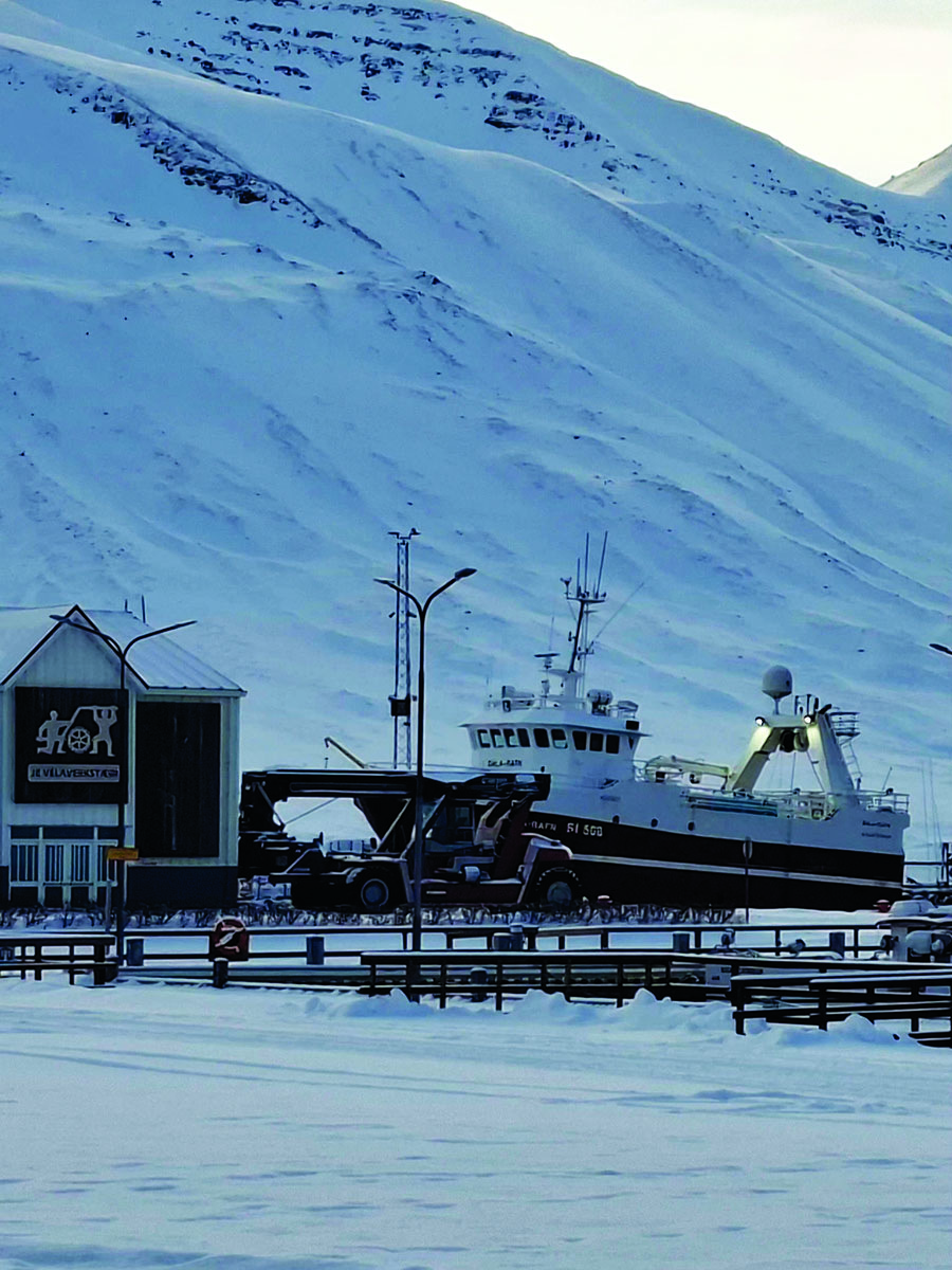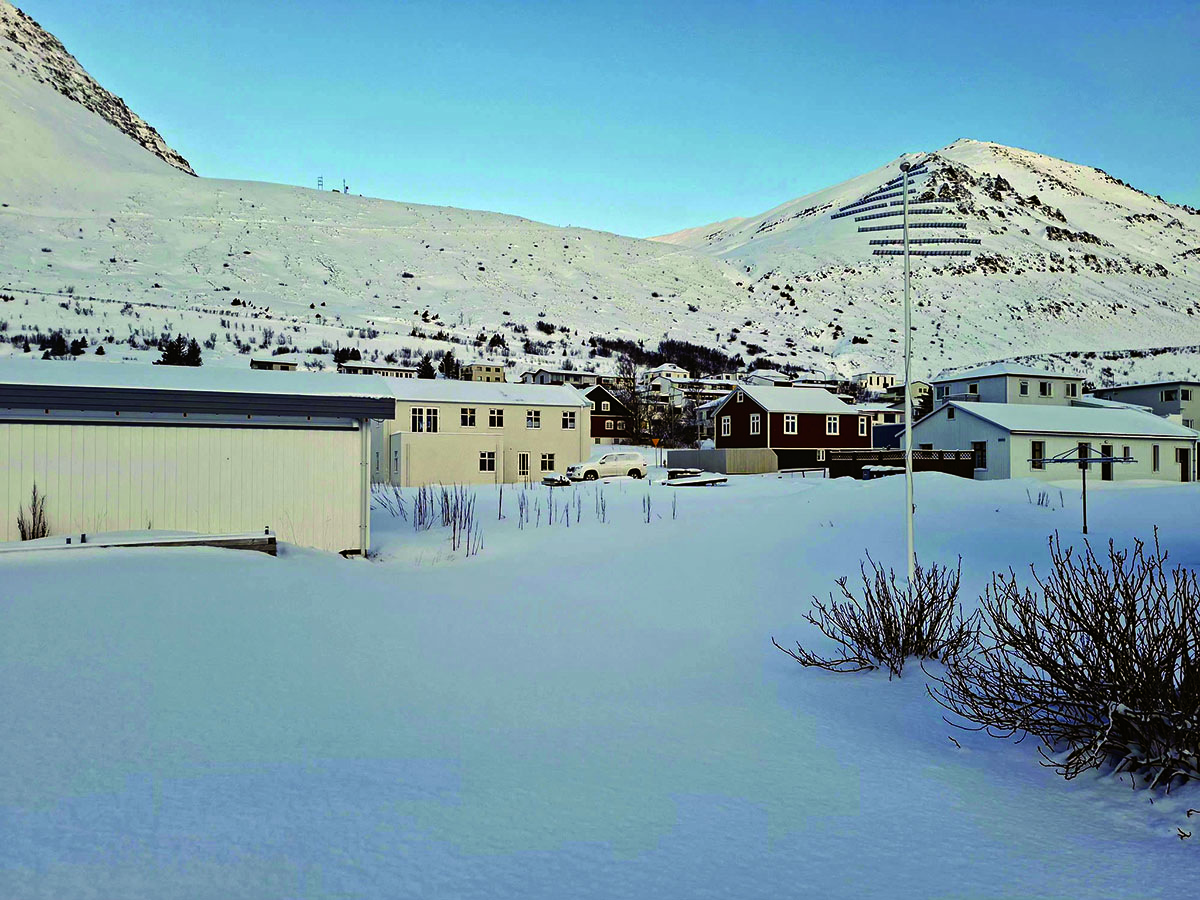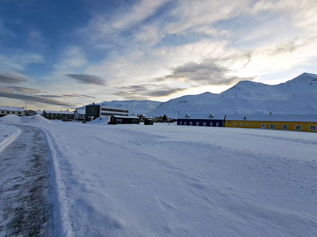 Útsýnið yfir fjörðinn var tært og skýjabakkar lituðust af hlýjum tónum morgunsins. Það er á slíkum stundum sem Siglufjörður sýnir sitt milda andlit, þar sem kyrrðin og birtan mynda einstaka stemningu sem erfitt er að lýsa með orðum einum.