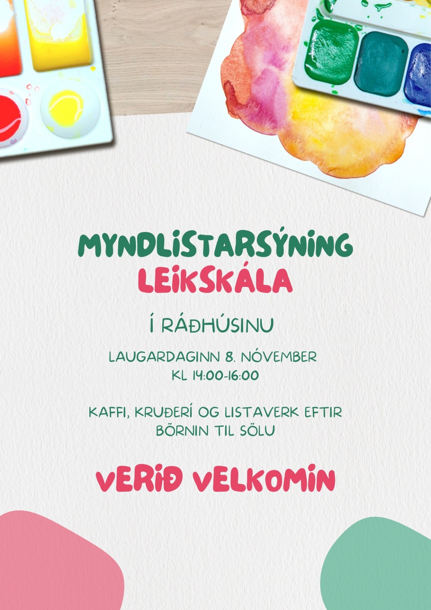 Myndlistasýning barnanna á Leikskálum verður haldin á morgun, laugardaginn 8. nóvember, í ráðhúsinu á Siglufirði á annarri hæð, frá klukkan 14 til 16.