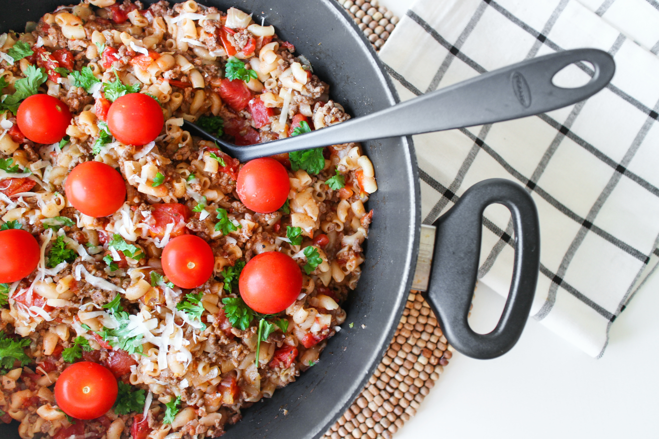 Nautahakks- og makkarónupanna (uppskrift fyrir 4-5)