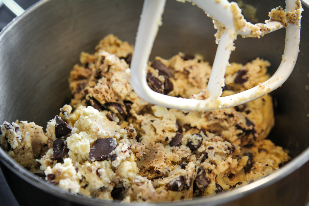 - Bætið súkkulaðibitunum varlega í deigið.
